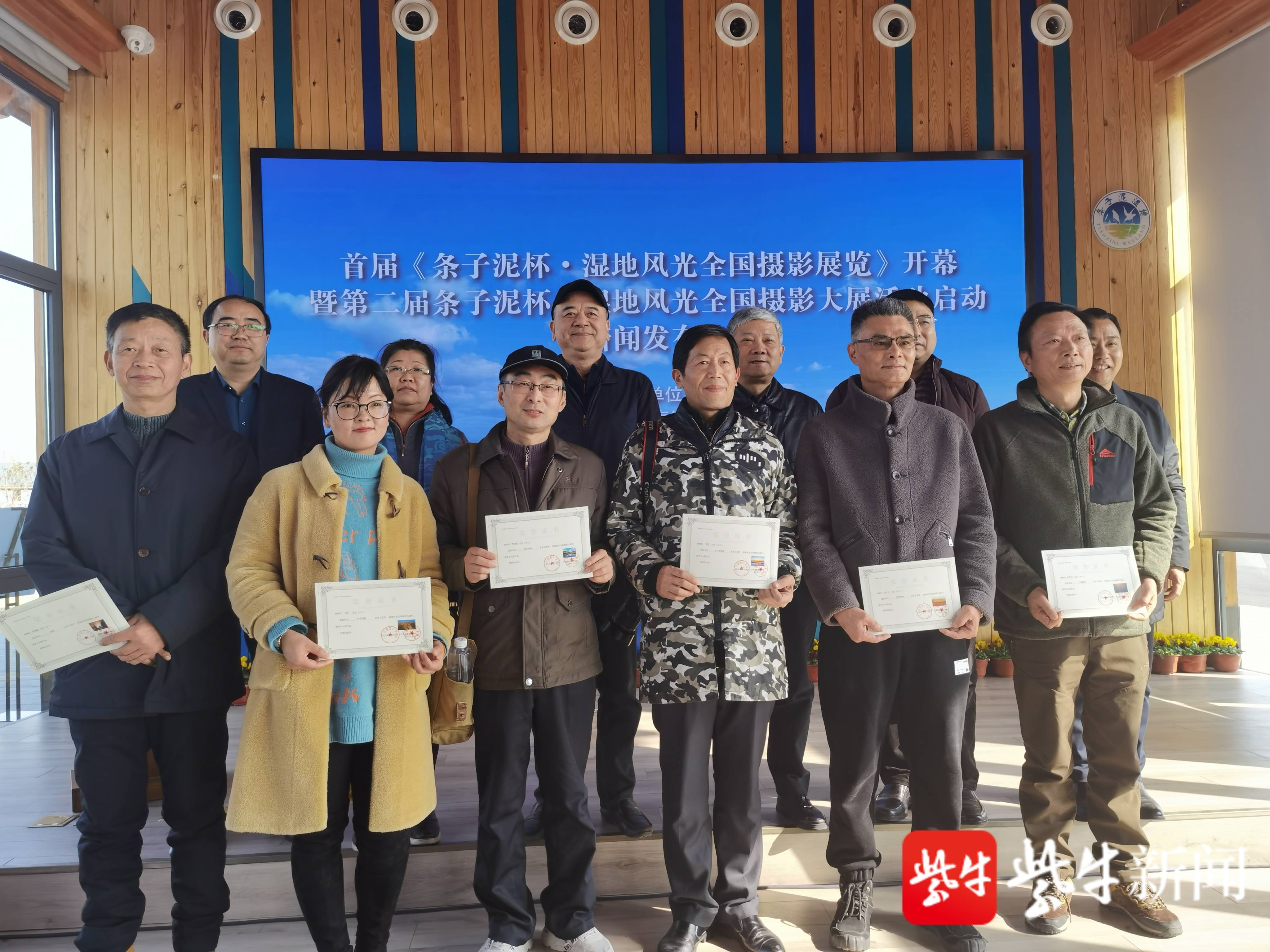 活动现场,江苏省摄影家协会主席许益民公布了首届“条子泥杯”湿地风光全国摄影大展的结果。来自盐城的周晨曦、赵恒山、周左人、张捷、梅国强、徐萍等 6 名摄影爱好者代表上台领取了获奖证书。