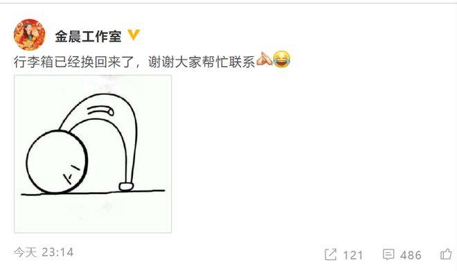 晚间,金晨工作室在社交平台发文回应,称“行李箱已经换回来了,谢谢大家帮忙联系”。 扬子晚报/紫牛新闻记者 黄彦文