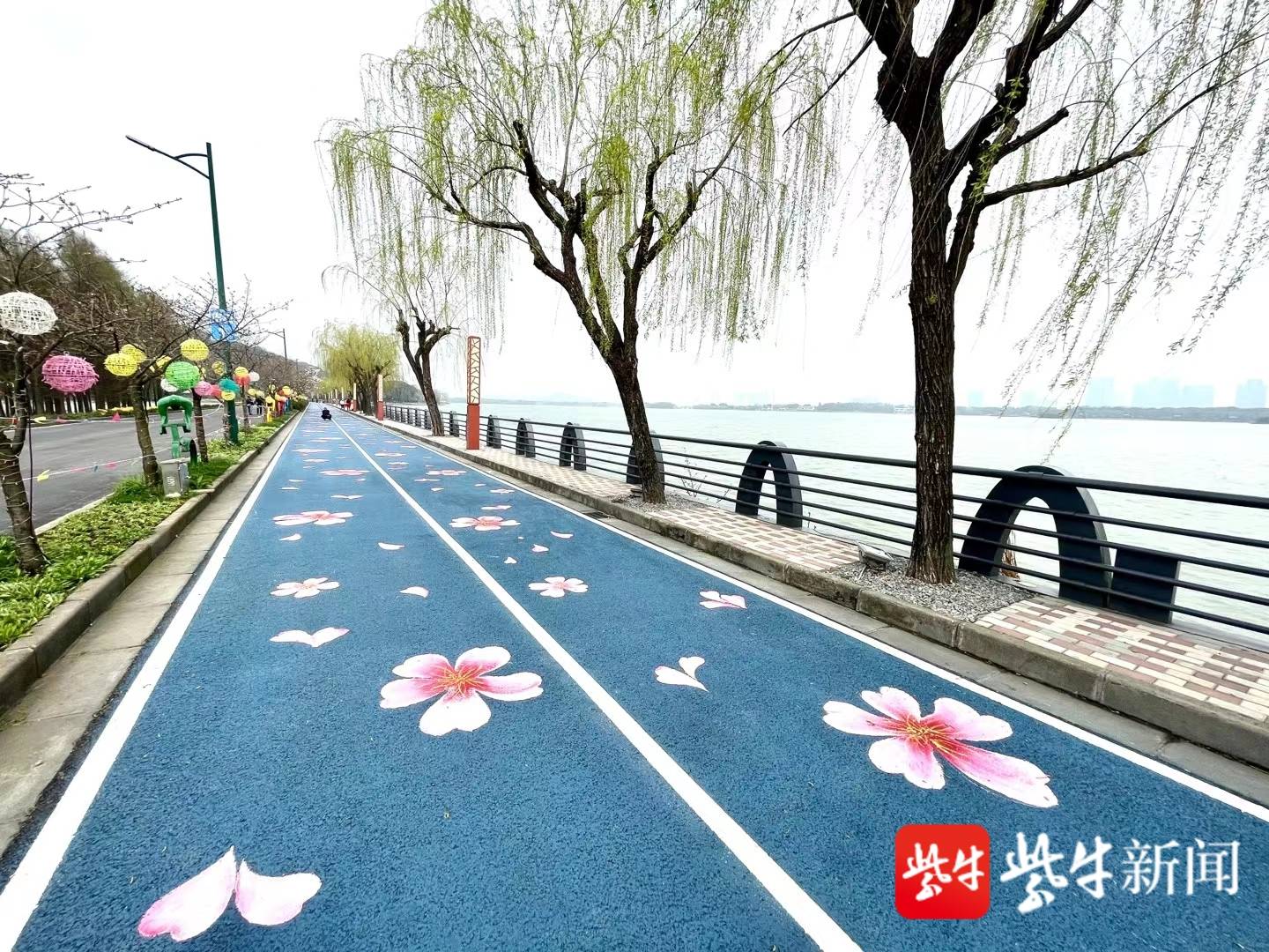 春风又绿柳树河岸,樱花大道伴君同行,这一美景如今正在无锡市鼋头渚景区附近的十里芳堤真实重现。