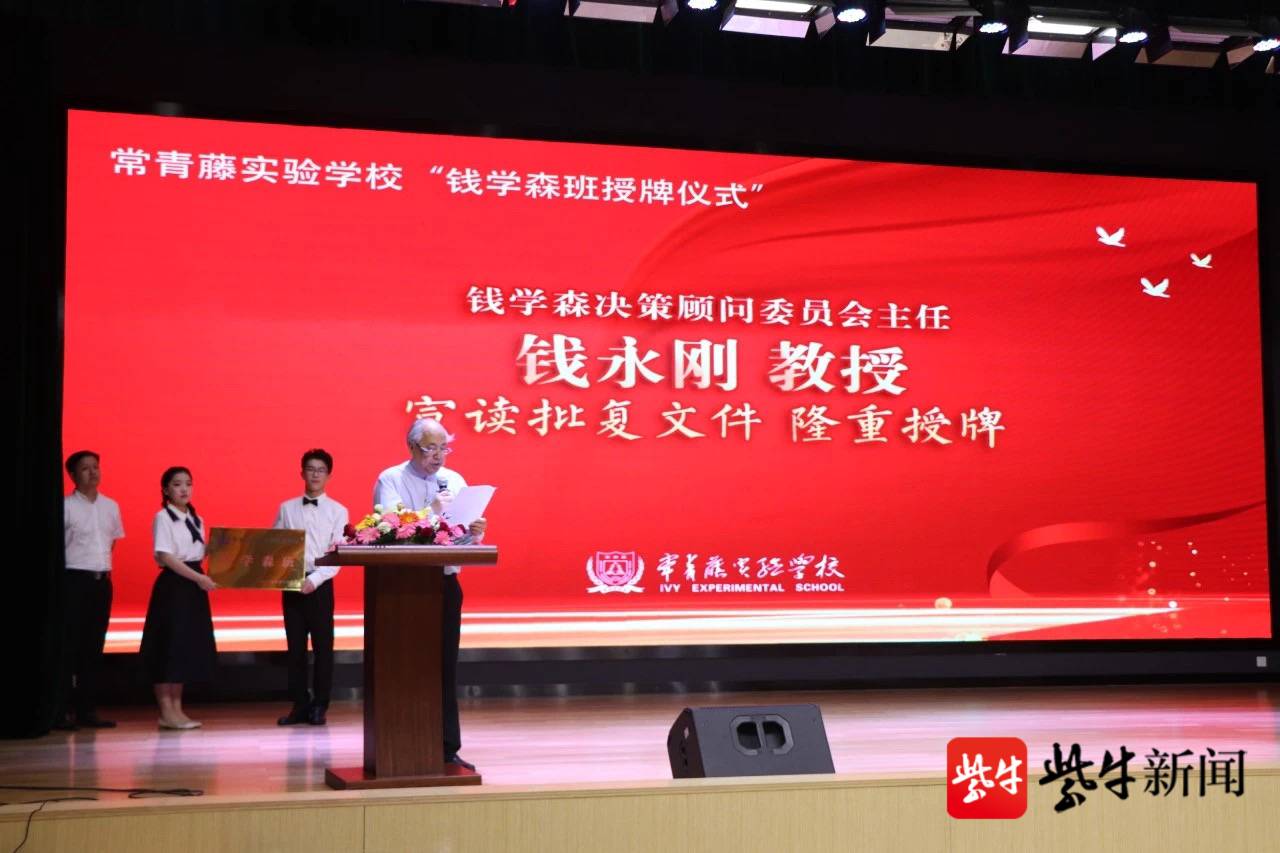 潜心育人十年,获中国航天钱学森决策顾问委员会的认可,成为苏州市首家拥有“钱学森班“冠名的学校……5月25日下午,钱学森之子钱永刚教授一行亲自来到张家港市常青藤实验学校,为“钱学森班”授牌和“致敬钱学森主题教育馆”揭幕。