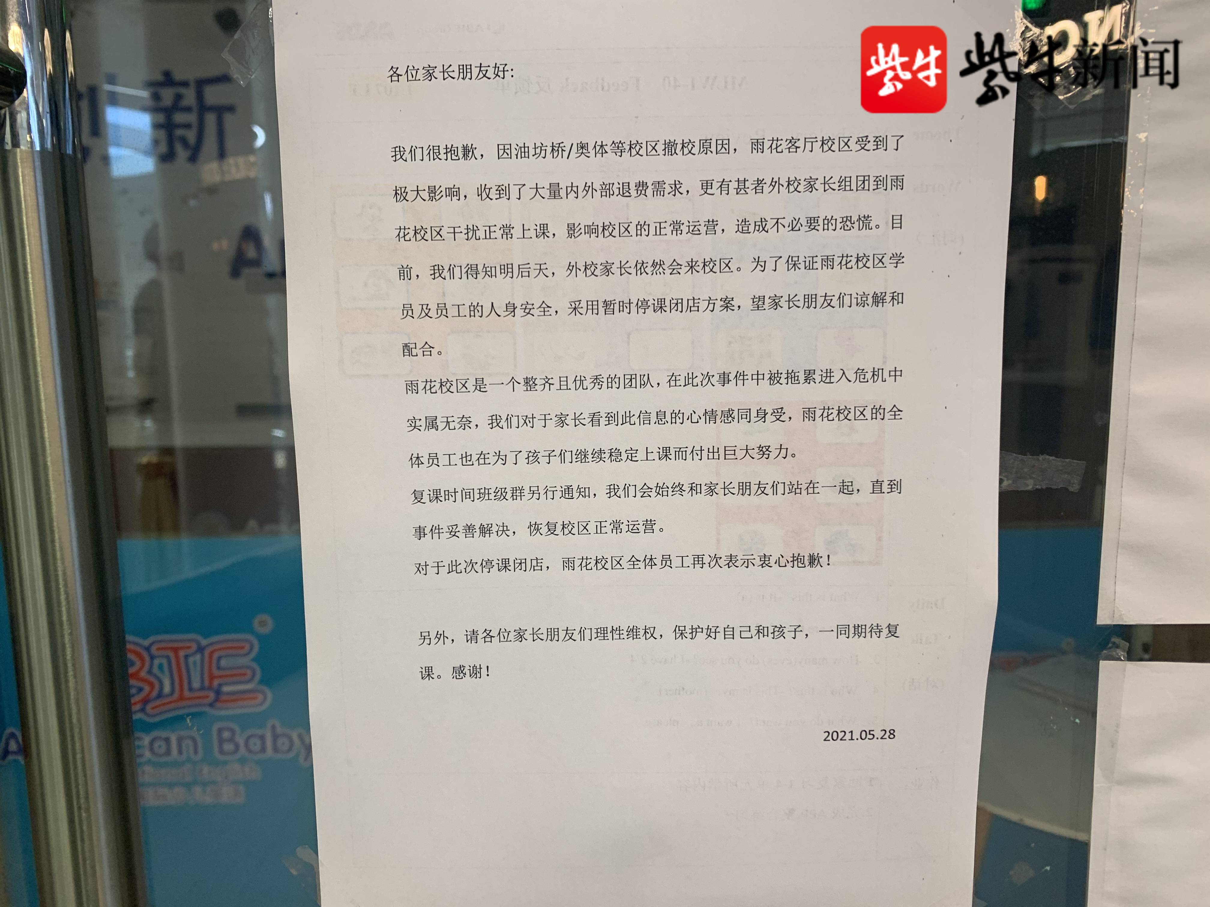 油坊桥校区的学员何去何从?何时恢复课程?扬子晚报记者将持续关注。