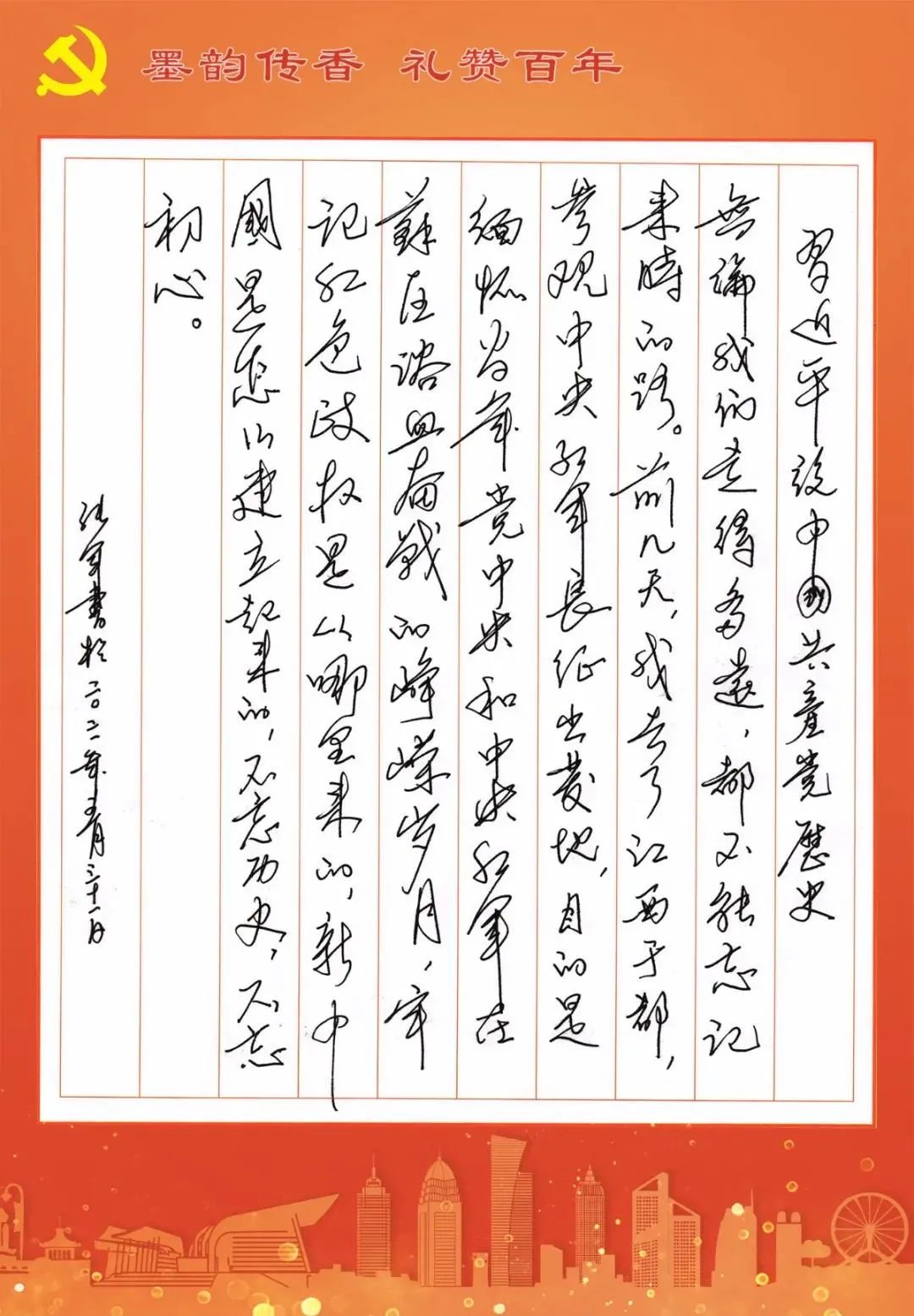 中华文化源远流长,汉字魅力历久幽芳。在喜迎建党100周年之际,无锡市住房和城乡建设局将弘扬中国传统文化与丰富党史学习形式融合起来,开展“墨韵传情 礼赞百年”党建主题硬笔书法比赛。
