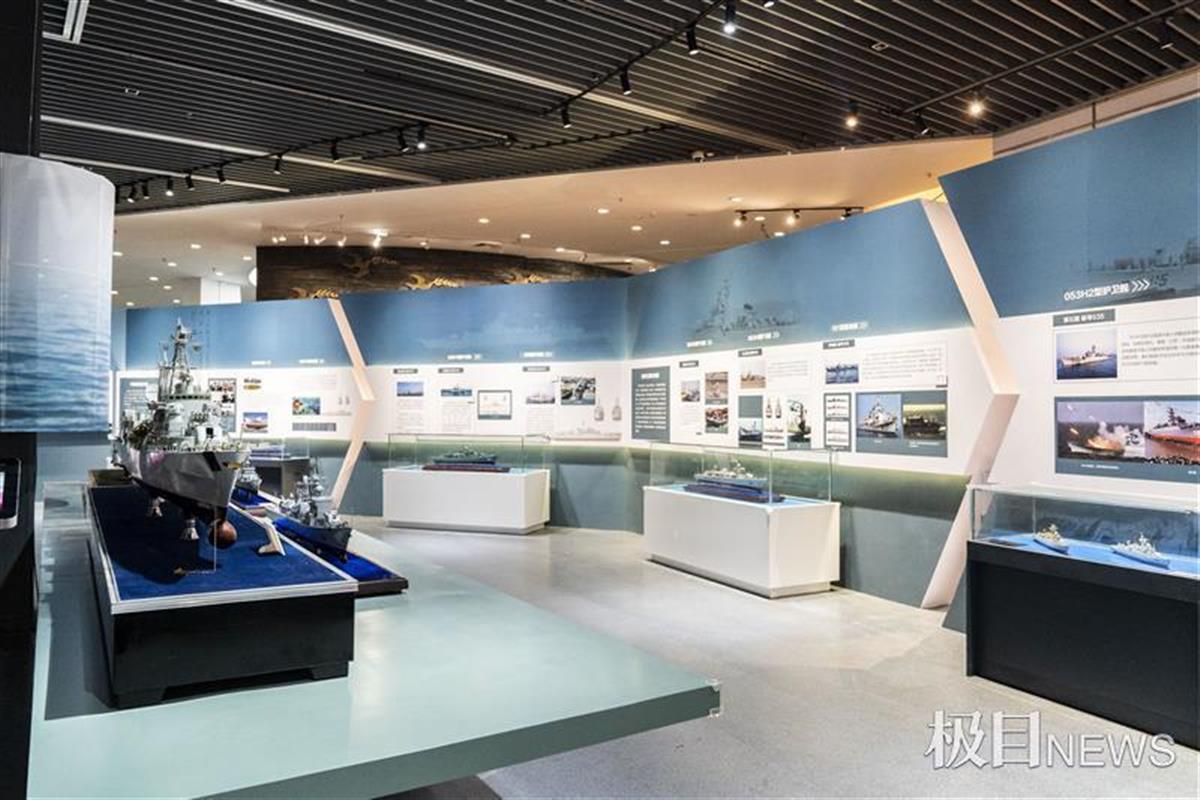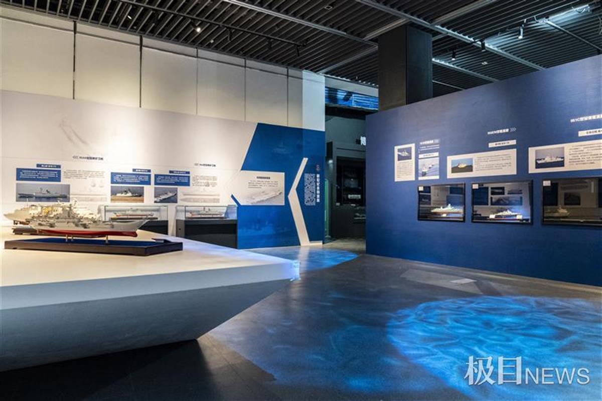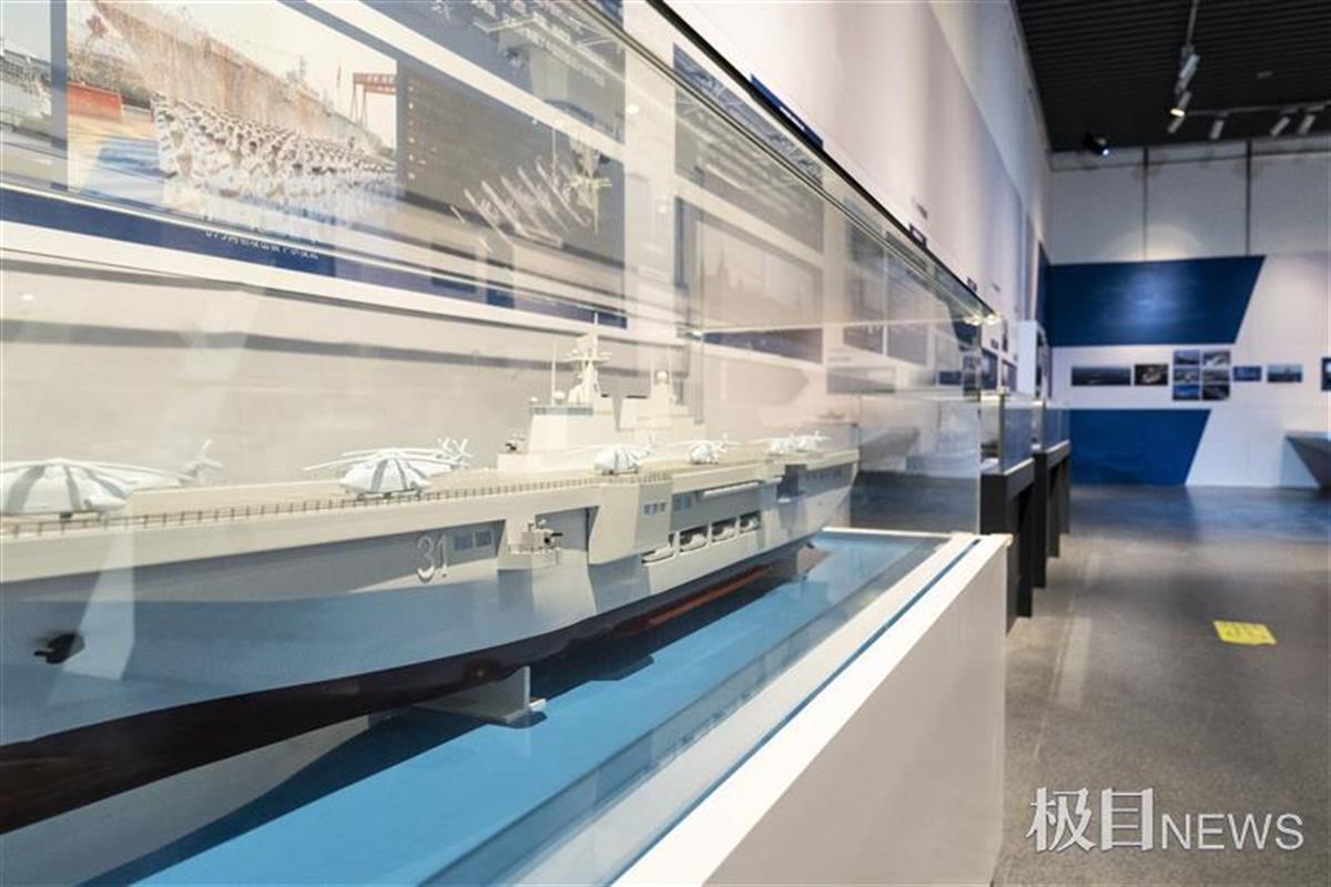 进入展厅,首先映入眼帘的是辽宁号航空母舰模型和17号航空母舰模型同行排列,令观者震撼,感慨万千。同时展厅中还展览极具代表性“致远”“永丰”等50艘舰模,展览包括《旧中国的海权悲歌》《人民海军发展壮大》《新世纪走向深蓝》三个主要版块,精选百余张经典照片,实物110余件,播放中国海军舰艇发展相关视频资料,多维度、多视角满足公众沉浸式观展的需求。展览在展示中国海军故事的同时,揭示从中国近代海军遭受苦难、饱受欺凌到中国人民海军走向复兴、向海图强的历史性变化。