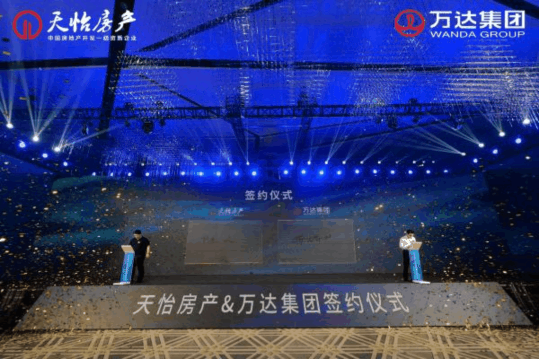 在现场,天怡和万达的双方代表上台签订了合作协议,此次双方合作选址布局丹阳市华南板块,将合力打造第四代万达广场。