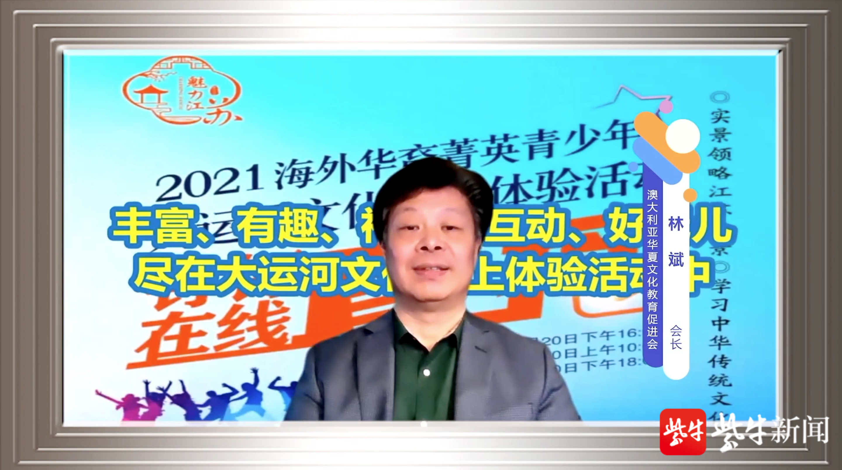 澳大利亚华夏文化教育促进会会长林斌说,海外华裔菁英青少年大运河文化体验活动独树一帜,惊艳海外华裔青少年及家长们,以独特的为侨服务的理念,聚焦大运河、江苏历史文化民俗、非遗技艺,打造了一个雅俗共赏、动静结合、悬念频出的网上中华文化传播活动,令海外华裔过足了瘾。