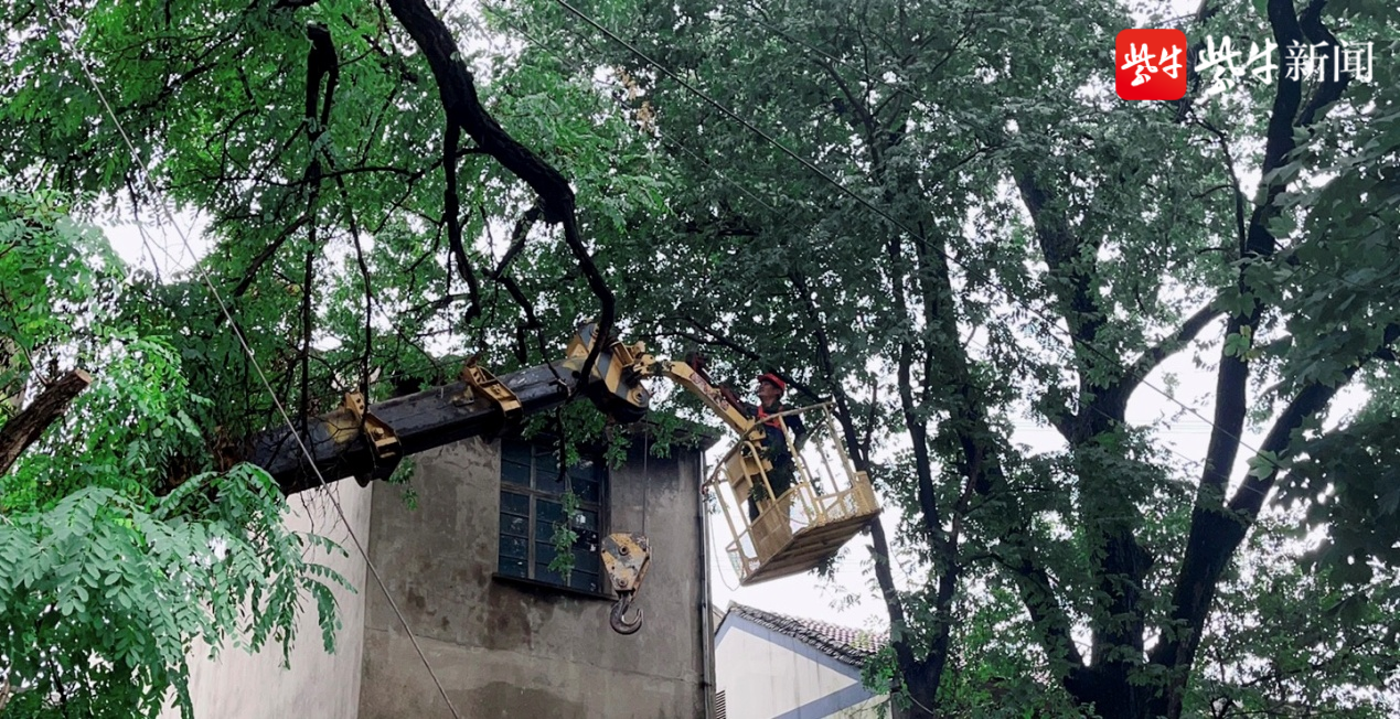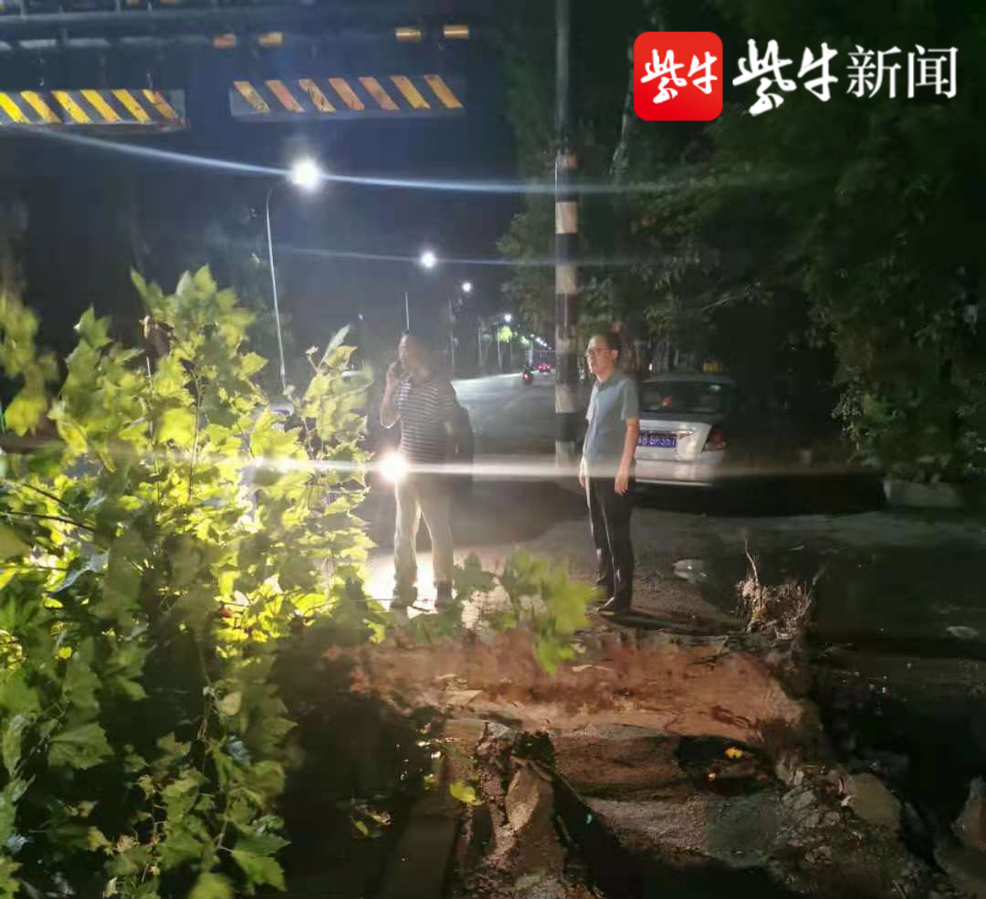 台风天大树倒卧主干道,无锡惠山钱桥街道盛峰社区连夜清理
