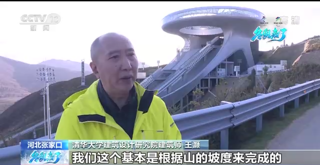 清华大学建筑 设计研究院建筑师 王灏:可以看到我们的跳台它是在一个山的凹里,依山而建,欧洲(我们)去看的很多跳台都是架起来的,我们这个基本是根据山的坡度来完成的。同时,两侧的山也可以对风(进行)阻挡,两侧也有一些可以做到防风作用的一些造型设计。这个“雪如意”其实从比赛来讲是一个很完美的赛道,同时我们考虑到赛后利用,也把上面的一些空间留给我们崇礼,作为赛后进行旅游观光,甚至举行一些活动的场所。