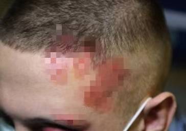 这起事件发生在布鲁斯基检查站。根据白俄罗斯媒体发布的图片,士兵的头、脖子和手上都有暗红色的斑点和水泡。