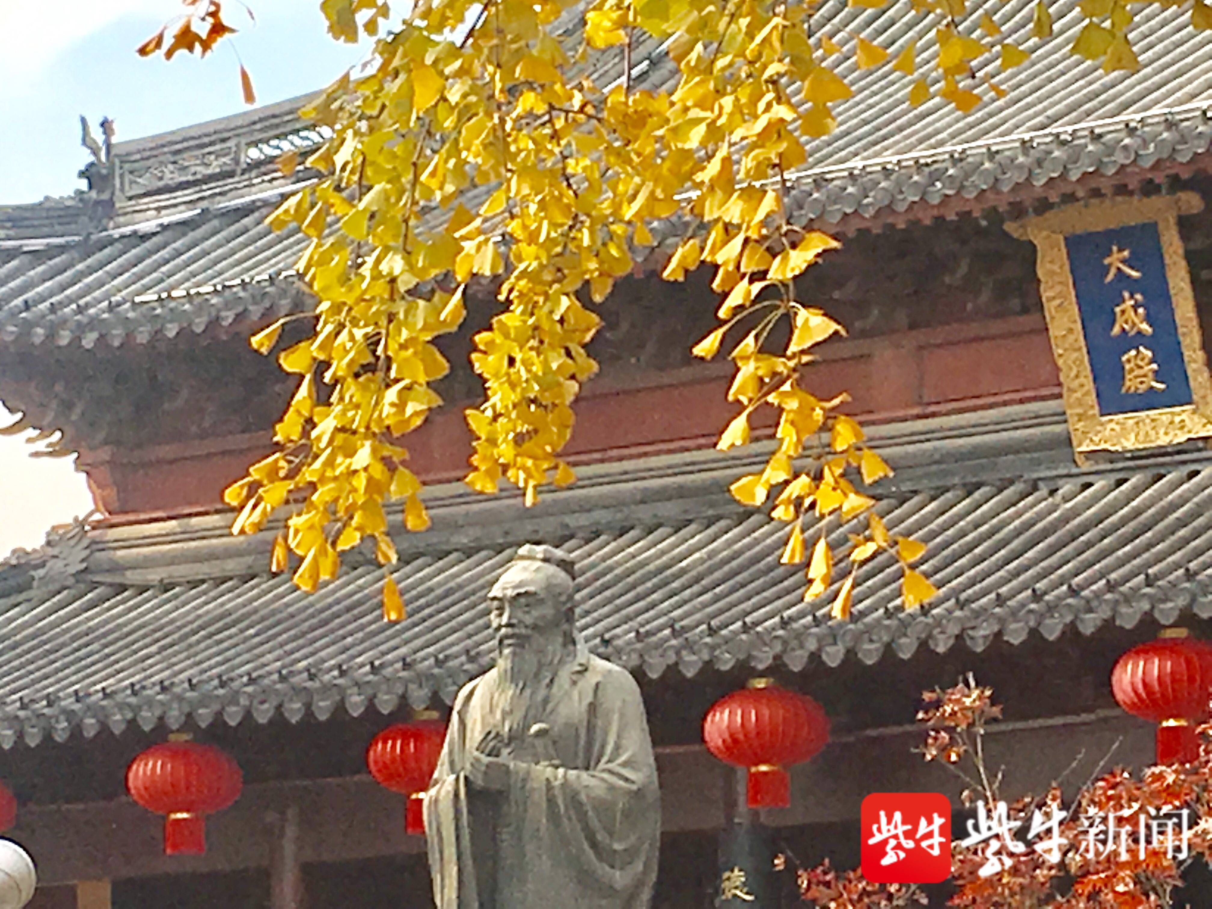 地上落叶宛如金色地毯!南京夫子庙景区银杏树满目金黄让人心醉