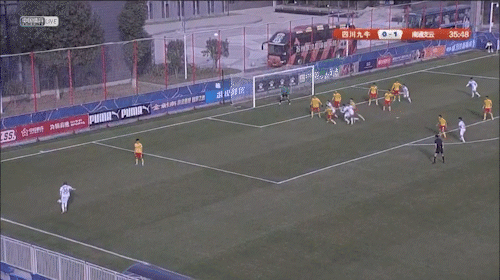 第38分钟,支云在右路获得任意球机会。特拉奥雷发出的任意球精准找到埋伏在前点的雷文杰,雷文杰迎球头槌破门!帮助支云再下一城!南通支云2-0四川九牛。