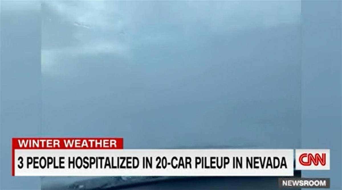 美国内达华州暴雪,致20辆车连环相撞