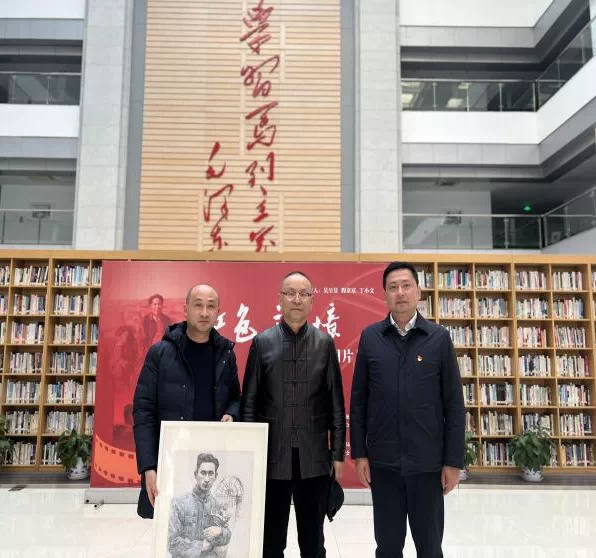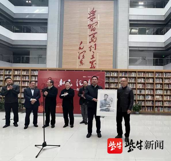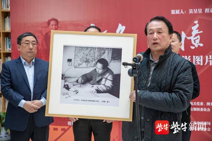 开展仪式上,程京京将父亲程默拍摄的照片《1946年毛泽东在枣园窑洞内写作》赠送图书馆收藏;省委党校将图书馆副馆长丁小文绘制的《程默肖像——革命武器》赠送给丹徒区收藏。