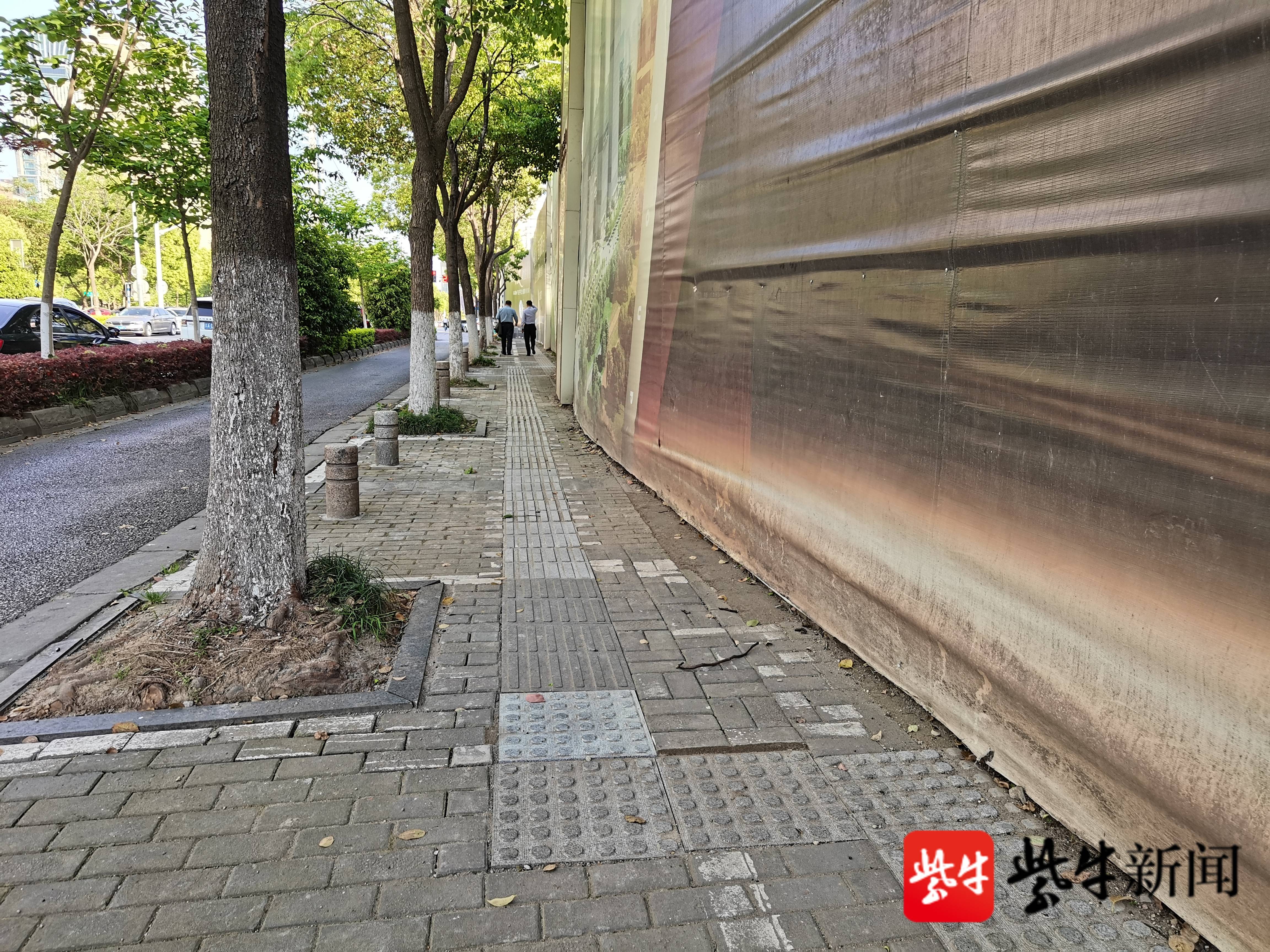 其中,河西金融城三期项目有一处盲道被围挡压住,已于4月7日下午完成整改。记者看到,现在养护公司已将被压住的盲道段进行调整衔接,方便盲人出行。
