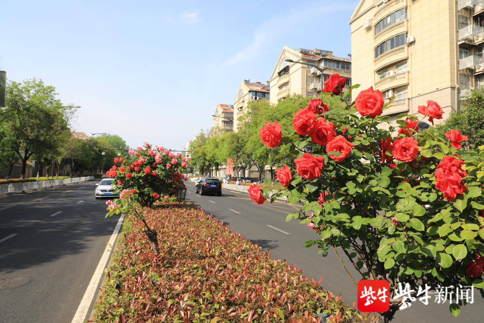 扬子晚报网4月24日讯(通讯员 徐福庚 记者 薄云峰)“花头小孩子拳头大、颜色艳丽多彩,美丽的花朵装扮城市街头景观,让人心旷神怡。”今天下午,路过南京苜宿园大街的市民们看看那些争奇斗艳的高秆月季花在蓝天白云衬托下,美不胜收。