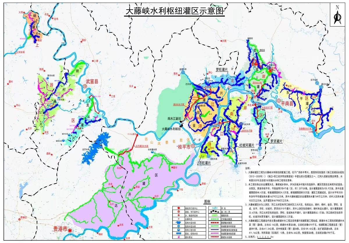 据了解,大藤峡水利枢纽灌区工程是新建大型灌区项目,已列入《珠江流域综合规划(2012-2030年)》和国家150项重大水利工程,静态总投资80.08亿元(贵港市62.00亿元,占77.42%;来宾市18.08亿元,占22.58%),设计总灌溉面积105.9万亩,同时向达开水库灌区(设计灌溉面积52.2万亩)进行补水,灌区范围涉及贵港市桂平市、平南县和来宾市兴宾区、武宣县,属大(2)型灌区,Ⅱ等工程。