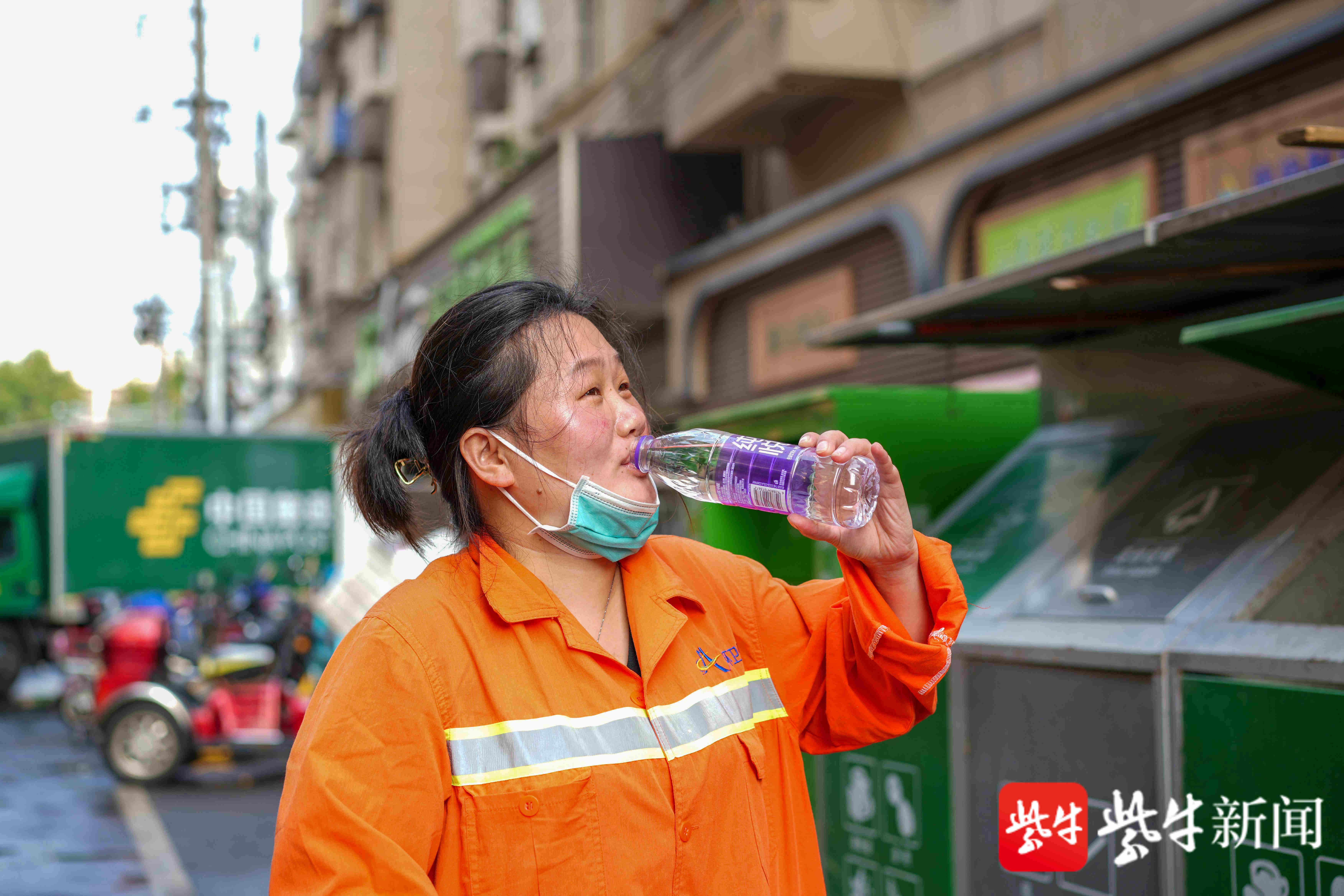 为了保障一线环卫工的工作环境,南京安城集团环卫公司根据市、区城管部门要求实施夏季作业模式,早上10点至下午3点暂停户外作业。不过,城市环卫依旧是今年夏季南京城市中最辛苦的高温职业之一。