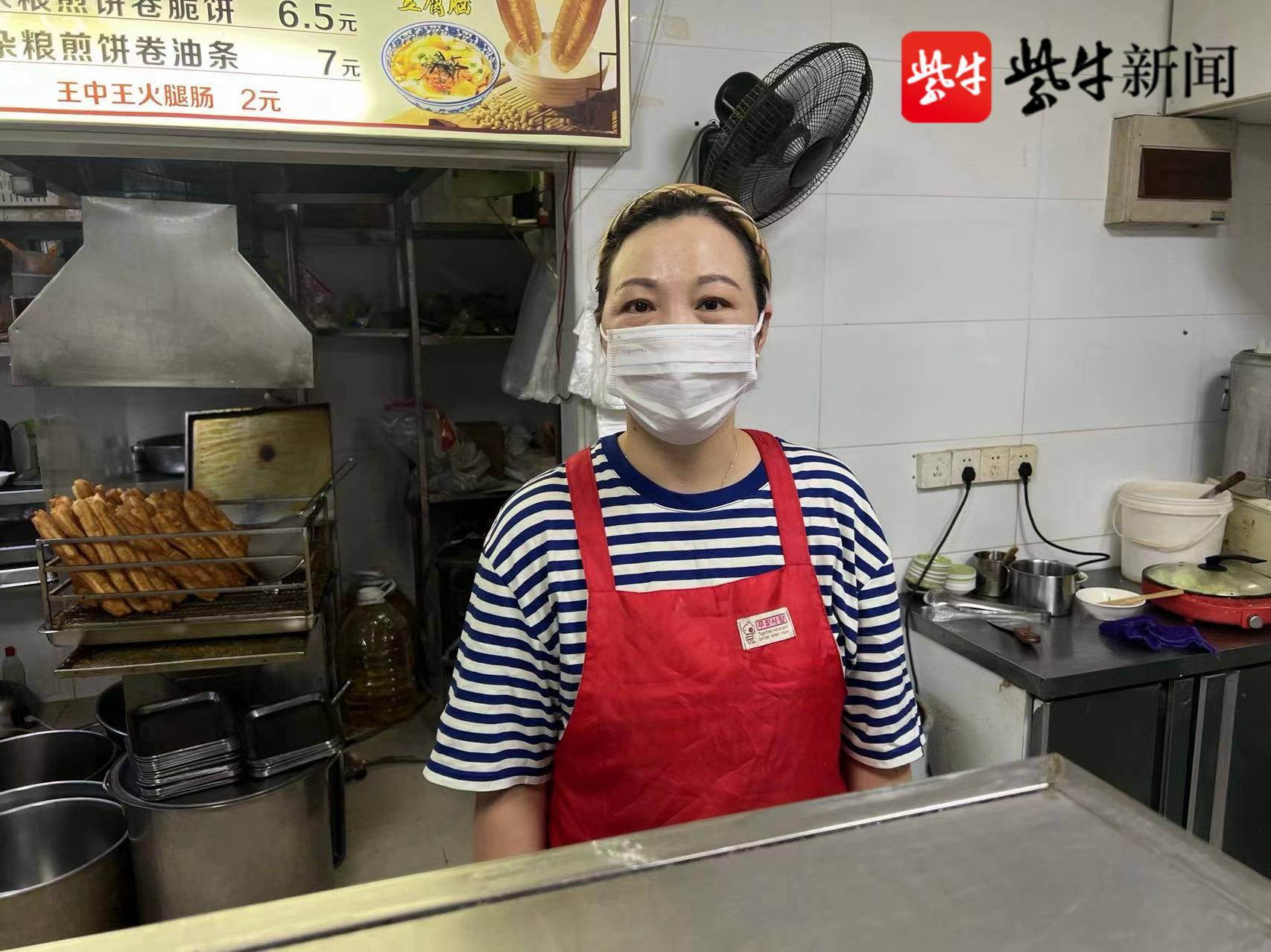李开英老家在河南,如今她已经在南京做了16年早点生意。她在南京有一个幸福的家庭,有2个可爱的孩子。她说,“今年高温持续时间太长,让人受不了,但也造成顾客怕在家做早点,每天生意更忙碌!热得也想歇一歇,但是不行啊!顾客对我们很期待,虽然日复一日很忙碌,但也让我感觉很幸福很充实!”