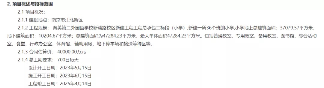 最新消息,育英二外新浦路校区新建工程正式启动招标!预计2023年6月15日开工,2025年4月14日竣工,为期700日历天。