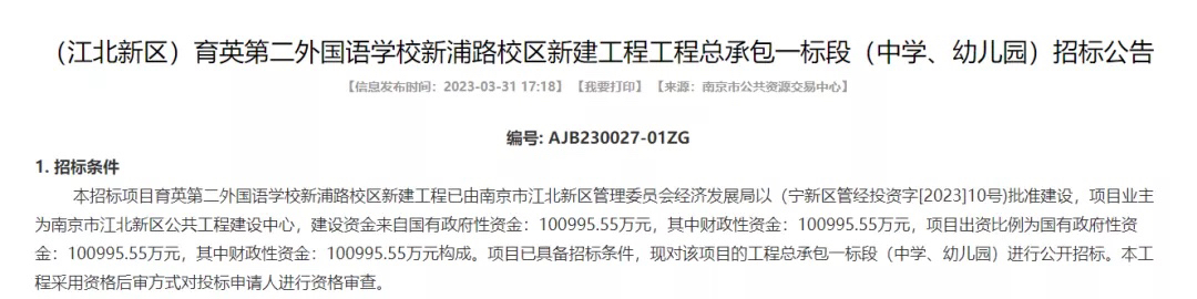 在今年2月,江北确定引进9大名校,其中就有育英二外,目前招标已经启动,正式动工已经提上日程。