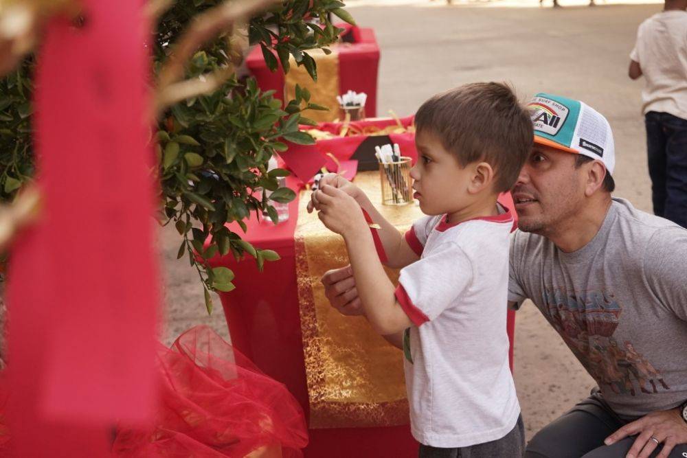 2月4日,在美国圣迭戈动物园,一名儿童将写着心愿的祝福卡片系在一棵“许愿树”上。新华社发(曾慧摄)