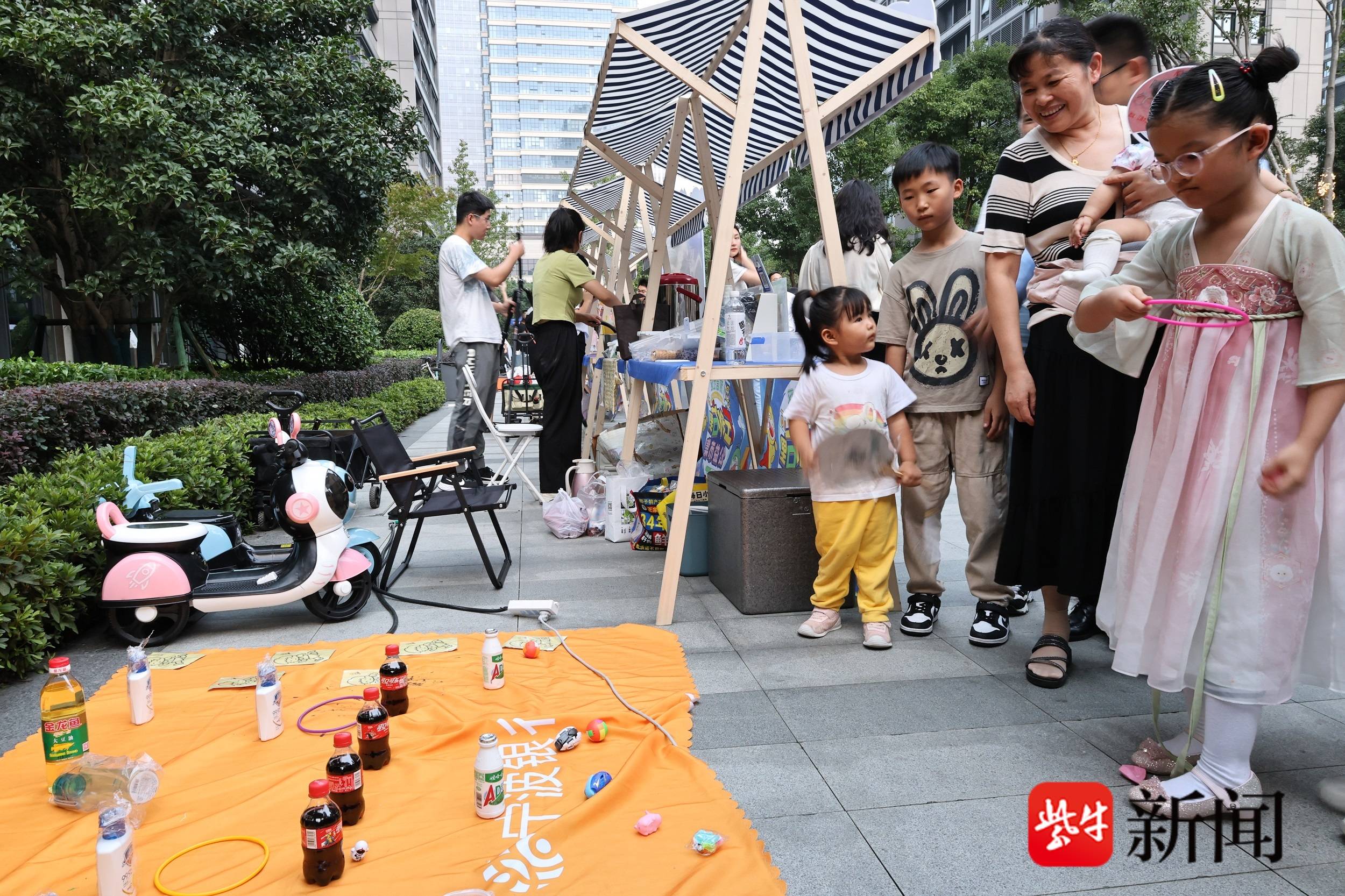 据了解,由于和鸣幼儿园的孩子们大部分都是小区的小业主,和鸣幼儿园老师们与社区的工作人员对活动方案进行前期的沟通,确保活动具有儿童观和儿童立场。放学后,孩子们将摊位推进和鸣小区,老师和小朋友一起布置了摊位,和鸣幼儿园的小朋友还亲手准备了很多游戏奖品,非常具有参与感。