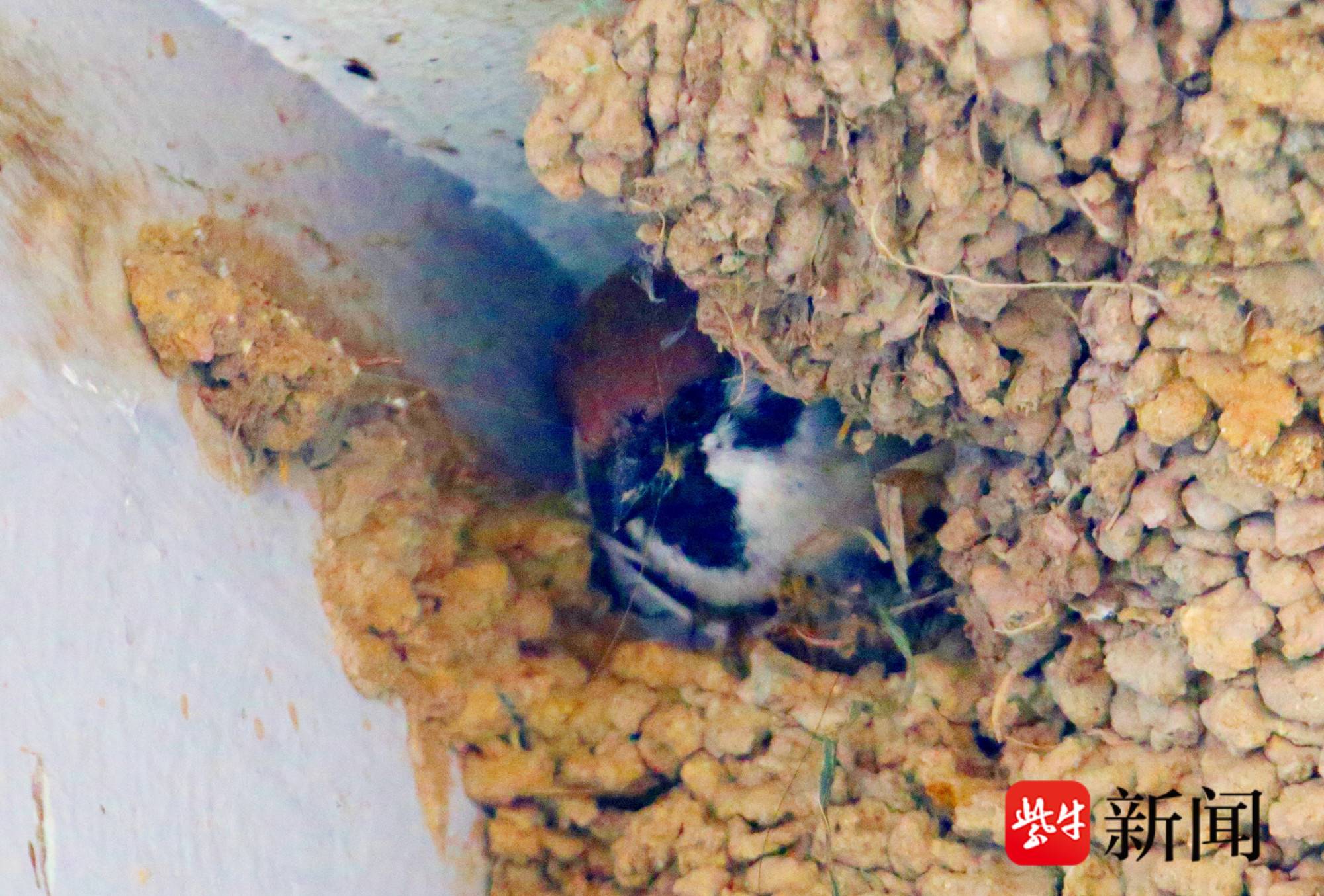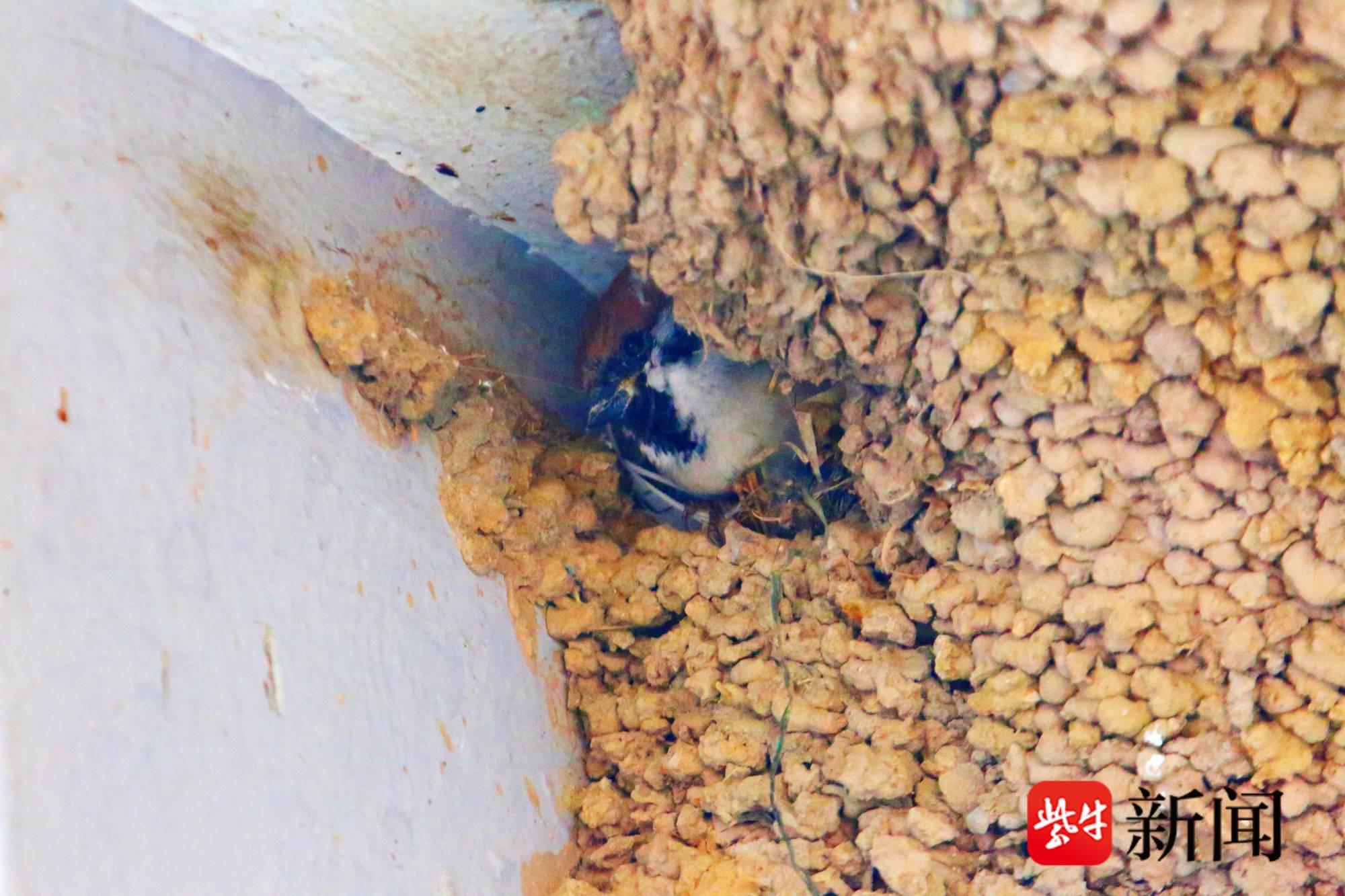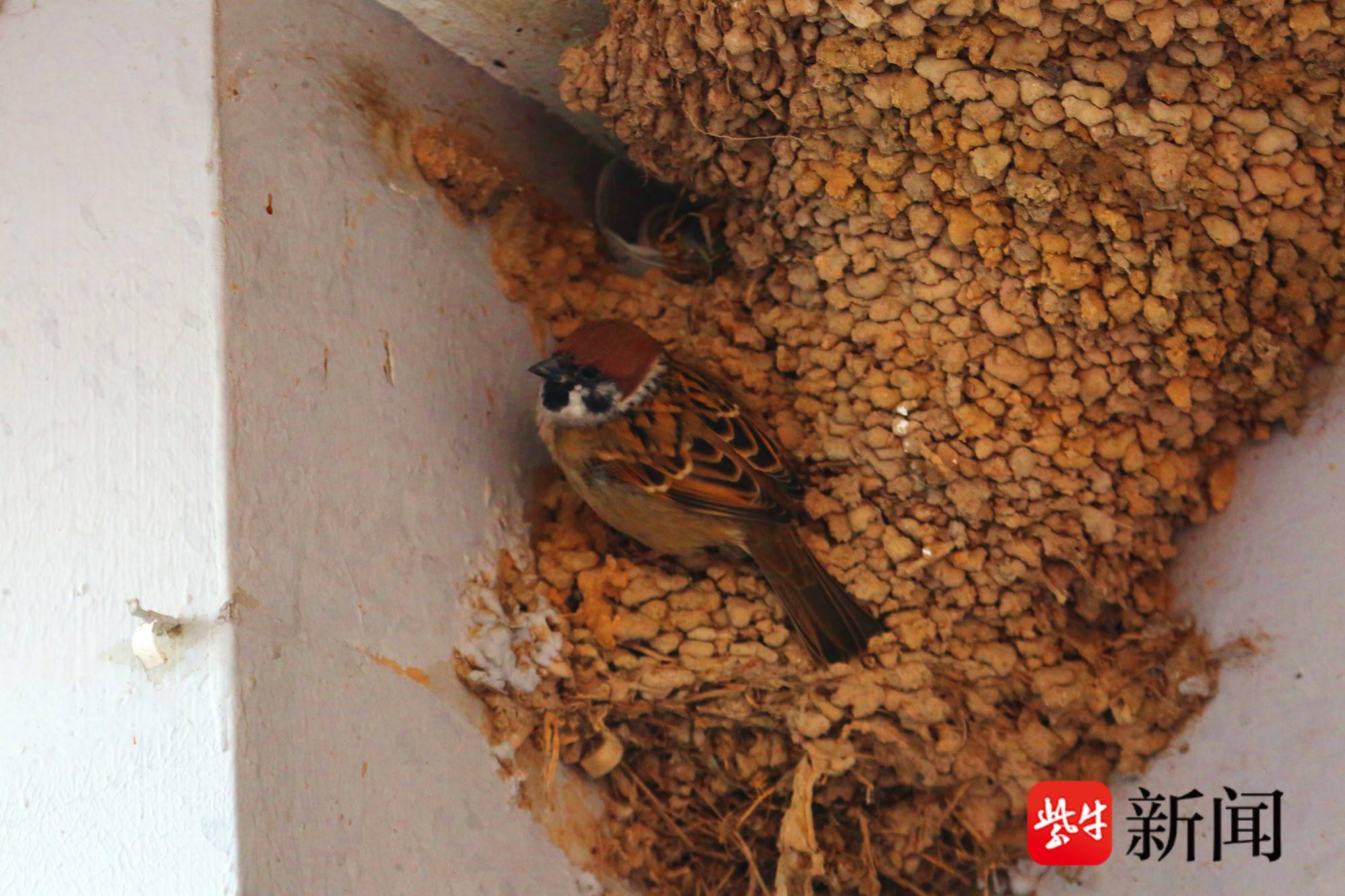 图为麻雀占据燕子的巢穴