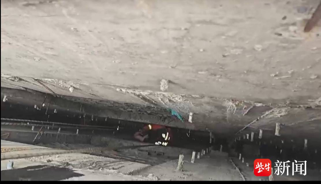 到达现场后,消防员们发现被困男孩已经掉入两楼间隙中,距离楼顶平台大约有6米高,宽度仅有30厘米左右。由于墙壁两边有很多裸露的钢筋,男孩的衣服已经被划烂掉落,他只能光着身子等待救援。