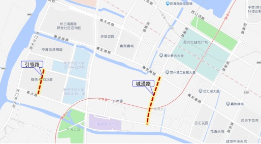 近日,位于高铁苏州北站附近的城通路、引领路建成通车。