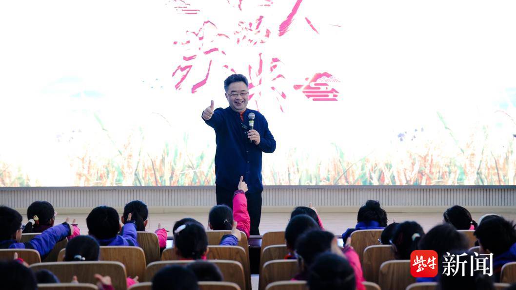 “吃好米,长身体;读好书,长精神”;“我爱水韵苏米”。1月26日,在北京东路小学紫金山分校礼堂,4年级三个班的同学们大声朗诵着。江苏省作家协会副主席、著名儿童文学作家祁智来到校园,为小学生们上了一节生动的“水韵苏米”启蒙课。