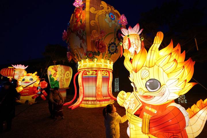 图为2月16日游人在山西太原古县城欣赏花灯(新华社记者 詹彦 摄)