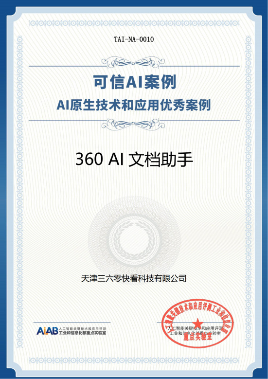 360双产品入选中国信通院AI原生技术和应用优秀案例