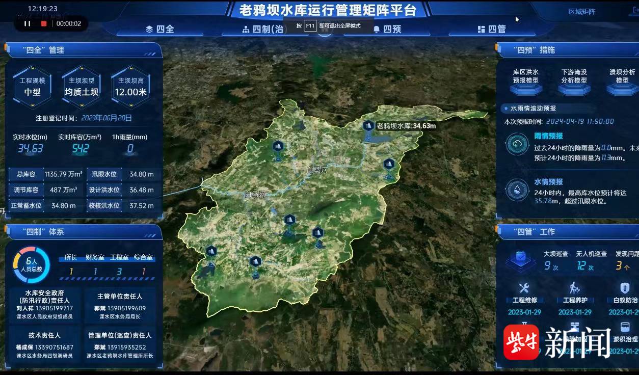 记者在现场了解到,通过设置在水库周边的系列技术设备,老鸦坝水库全面掌握水库特性、确权划界、注册登记、管理信息等静态要素,整合接入库区和周边的雨水情监测、大坝安全监测、视频监控、智能界桩等动态类据,建设数字档案,强化智能分析,实现了全覆盖责任明晰、全天候实时监测、全要素详尽掌握、全周期闭环管理。