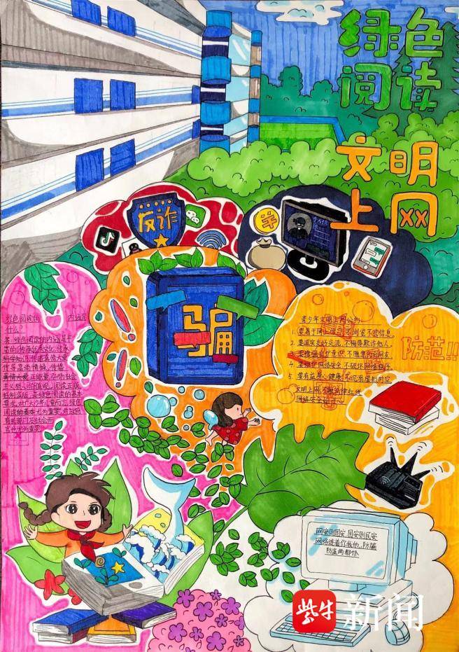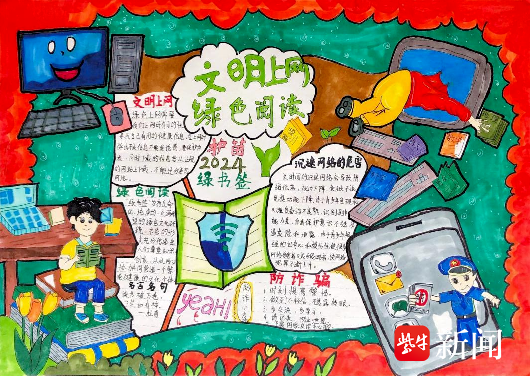 近日,以“花开新吴·护苗成长”为主题的无锡市新吴区“护苗·绿书签”手抄报大赛顺利收官。赛事组织广大青少年学生围绕“绿色阅读”“文明上网”“拒绝盗版”等内容进行手抄报创作,自2024年4月20日启动以来,全区27所中小学校学生参加,共征集原创作品500件,评选优秀作品115件。后续,新吴区“扫黄打非”办公室将进一步深化活动成果,指导小作者对作品进行著作权登记,引导中小学生树立版权保护意识。(吴璇)