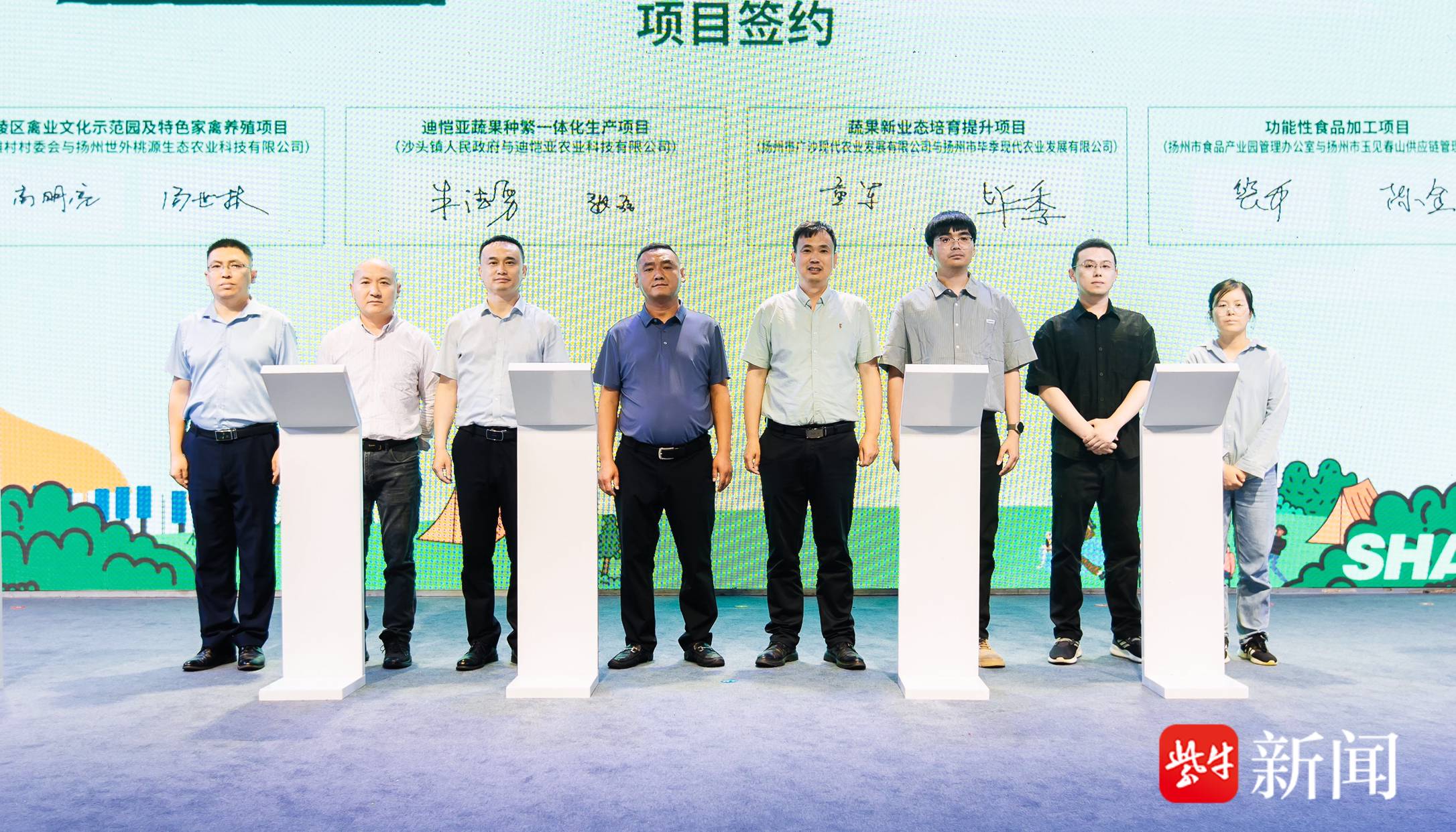 现场还举行了项目签约仪式。广陵区禽业文化示范园及特色家禽养殖项目、迪恺亚蔬果种繁一体化生产项目、蔬果新业态培育提升项目、功能性食品加工项目、南粳系列才林水稻基地建设项目、花卉植物精油萃取项目、特种水产规模养殖项目、畜禽养殖废弃物资源化利用项目8个农业项目集中签约。