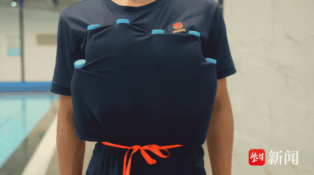 另外,如果突遇洪涝灾害和城市内涝时,“我们可以用空水瓶自制救生衣避险,需要准备5到6个空水瓶、绳子或腰带。将瓶盖从外面和衣服内侧的瓶身拧紧,依次把瓶子都固定在衣服上,尽量靠近头部的位置,然后将衣服扎紧,避免瓶子晃动或脱落,这样一件简易的救生衣就做好了。”消防工作人员表示,落水后身体要呈仰卧位,双手交叉抱胸,护紧瓶子,身体就可以较为轻松地浮于水面。此时,耐心等待救援人员即可。