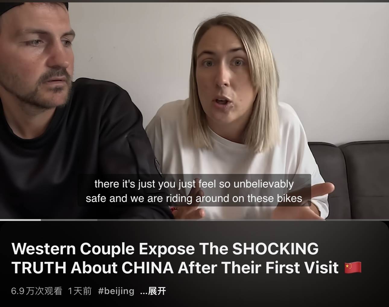 两位拥有超过6万粉丝的英国博主在最新发布的视频中表示,在中国感受到“难以置信的安全”。“这里是那么放松的好地方,中国的生活方式是如此平静。”这两位博主还在其他视频中表示,中国高铁令人惊叹:“你感觉不到火车的任何晃动,如果不是有些噪音,我甚至不认为我们正在移动。”