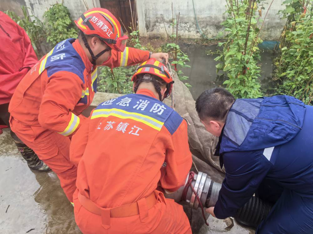 7月10日9时04分,镇江市消防救援支队指挥中心又接到报警:镇江市谏壁镇谏壁油库求助排水。消防人员到场后,发现厂区内下水道堵塞雨水无法排除,水深达到成人膝盖。消防人员立即利用车载泵对下水道进行抽水,共排水约300吨。