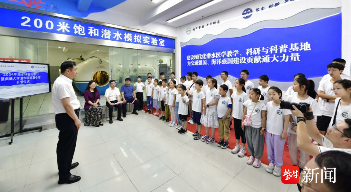 今年7月11日是第20个中国航海日。为深入贯彻落实习近平总书记关于经济强国必定是海洋强国、航运强国等指示精神,进一步发挥高校科研机构的责任担当,普及潜水科学知识,激发儿童热爱海洋、筑梦深蓝的情怀,弘扬新时代航海精神,南通大学特种医学研究院(南通市科普教育基地)举办了2024年潜水科普开放日暨南通大学潜水科学夏令营开营仪式。