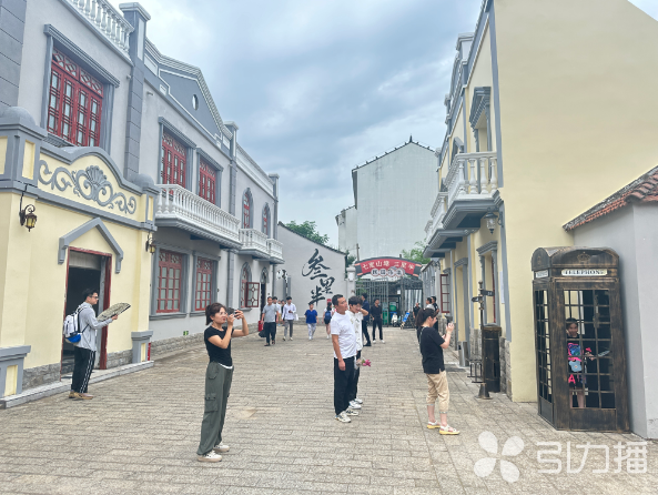“火车站”的南侧是两幢民国风格的洋楼,规模较大的洋楼仅各类房间就有十几间,相互之间可以拆并组合。在大洋楼里,装修布置了客房、会客厅、卧室,甚至连民国时期的法庭、教堂、西餐厅、会议室都一应俱全。两幢民国建筑中间,是一条民国商业街,街上的店招牌、广告贴画等民国味儿十足,人走进去,仿佛“穿越”到了民国时期。在民国建筑群的南面,则是古色古香、粉墙黛瓦的明清建筑院落,“马头墙”“半亭楼”等明清建筑该有的苏州元素全部具备。