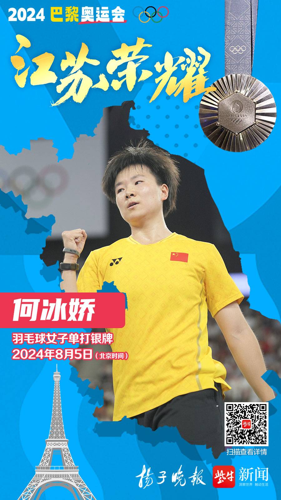 巴黎奥运会羽毛球项目的比赛也在第十比赛日收官,羽毛球女单决赛,中国选手何冰娇不敌韩国选手安洗莹收获一枚银牌。中国羽毛球队也以2金3银共五枚奖牌的成绩结束了巴黎奥运之旅。