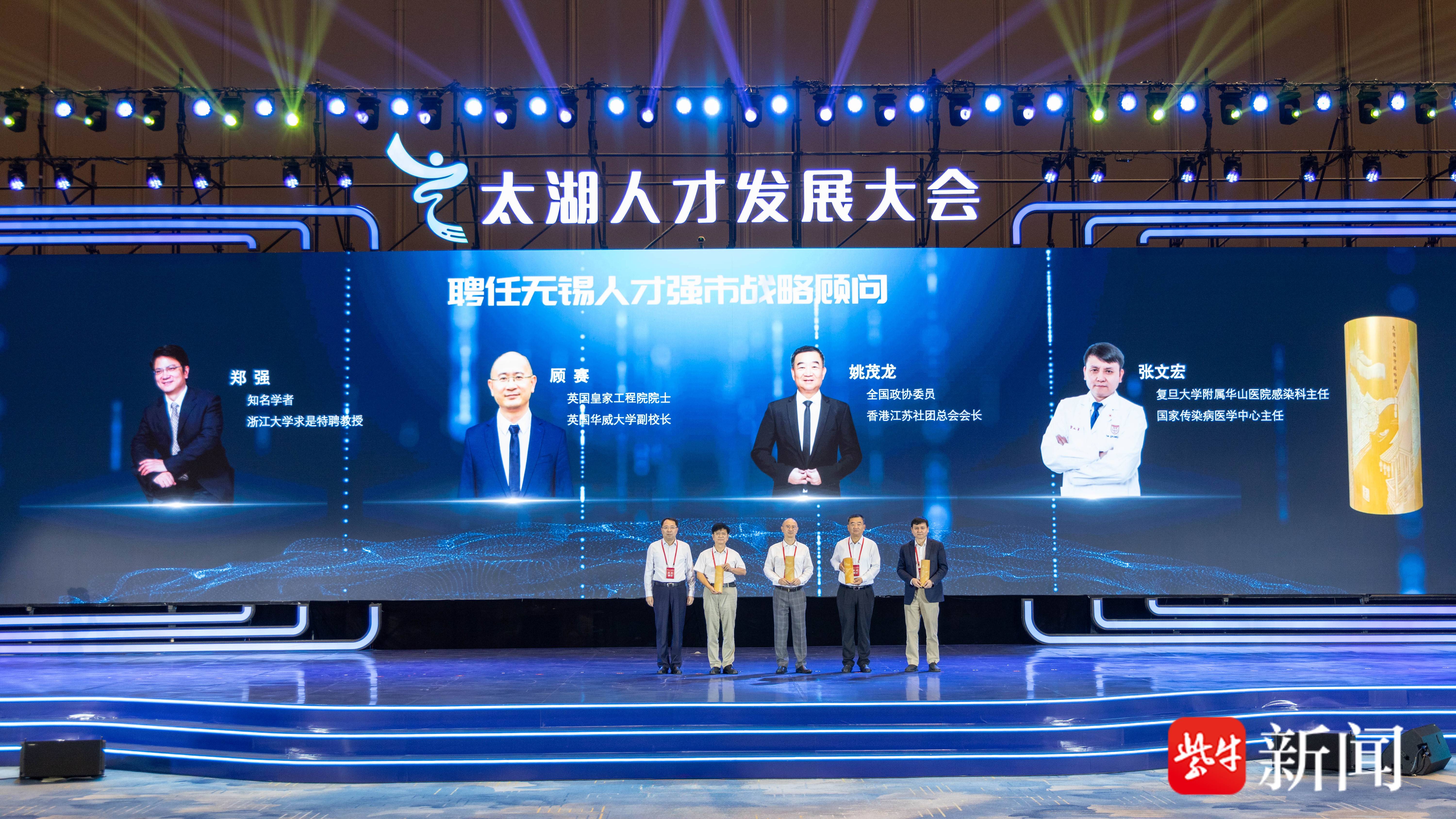 在8月9日举行的2024太湖人才发展大会上,英国皇家工程院院士、英国华威大学副校长顾赛,全国政协委员、香港江苏社团总会会长姚茂龙,知名学者、浙江大学求是特聘教授郑强,复旦大学附属华山医院感染科主任、国家传染病医学中心主任张文宏四位专家学者被聘为无锡人才强市战略顾问。