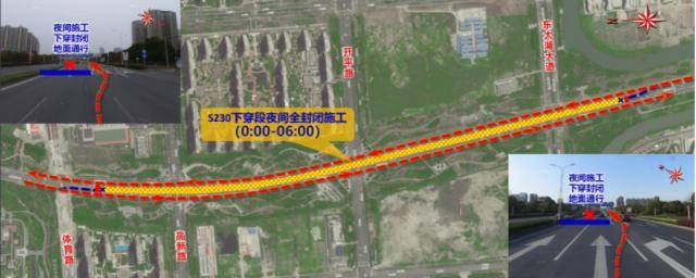 施工期间,230省道下穿段双向全封闭,过往车辆通过地面道路通行。