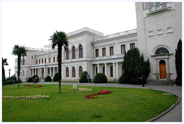 原本以为举行这样一次世界最高级别的会议,又是当时苏联最著名的度假圣地,里瓦几亚宫应该是规模宏大、奢侈豪华的地方。但走进去一看,却并不是这么回事,主建筑就是一座环境幽雅的乳白色皇家庄园。据说该建筑始建于140年前。1862年至1866年建成沙皇庄园,1894年作为最后一个沙皇尼古拉二世的夏宫。苏联解体后,这儿归属于乌克兰,成为了一个主要是展示雅尔塔会议的主题博物馆。
