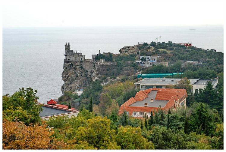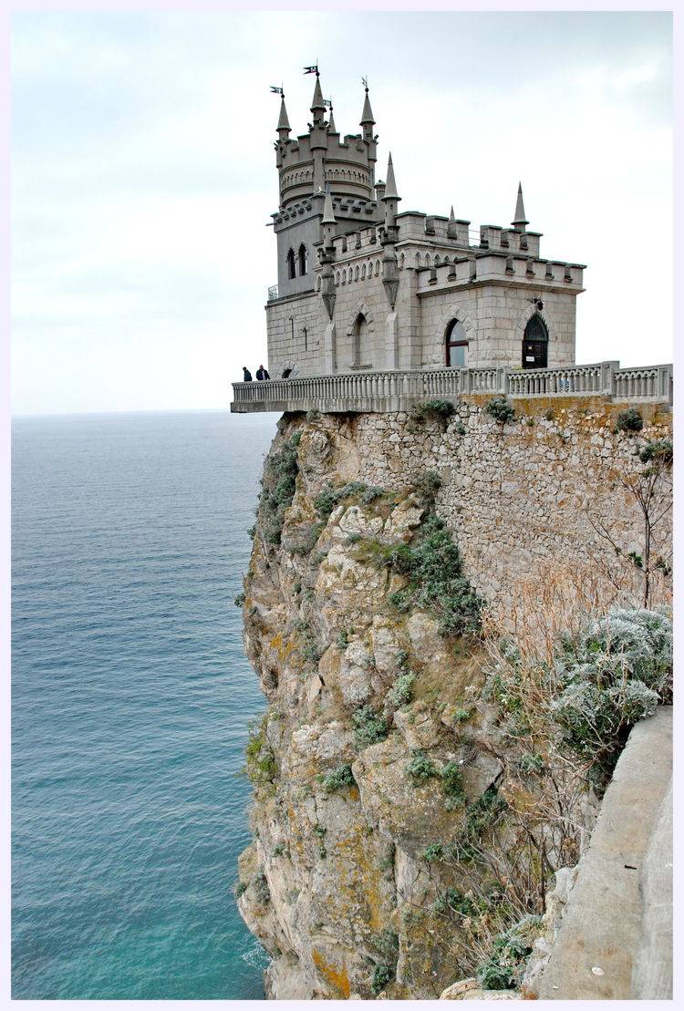 我们是一大早坐中巴车从基辅直接到克里米亚的,目的地主要是雅尔塔这个度假圣地,沙俄留下的里瓦几亚宫。但抵克里米亚后停靠的第一站是耸立里海边峭壁上的克里米亚标志性建筑燕子堡,俗称燕子窝。据说该城堡建于1912年,是克里米亚的象征。传说当时俄罗斯和土耳其战争中的某一位领袖建造出这样的城堡。这里是俯拍燕子堡最好的角度,也是最危险的角度,因为这块岩石的右边,就是几十米高的悬崖。但碧蓝的海水,险峻的峭壁,逶迤的海湾,以及海边满眼的翠绿,很美很美。