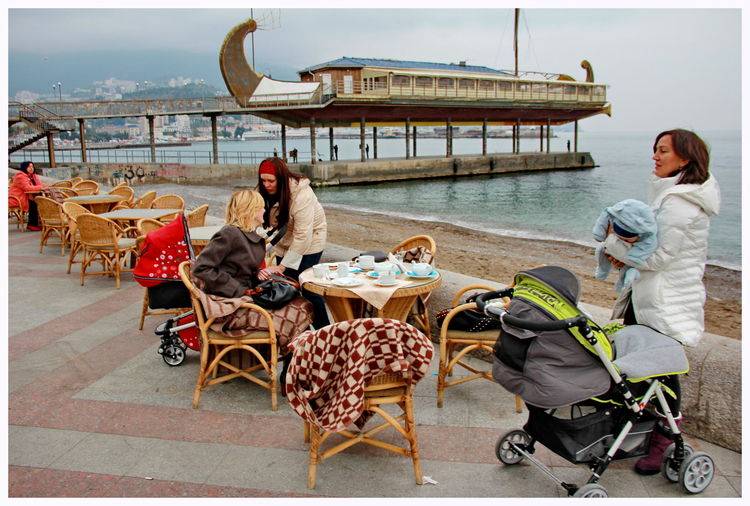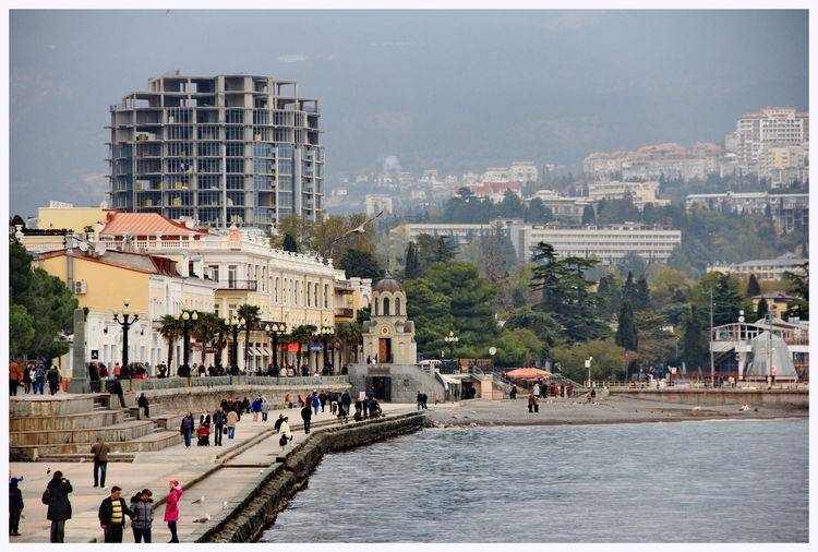 从里瓦几亚宫出来,我们一行来到了雅尔塔市的海边,这儿真的太美了。远眺是依山而建、错落有致的城市风光,近看是无数海鸟盘旋着的碧蓝海水,宽广的海边广场上,灿烂的秋阳下,微微的海风中,老汉们聚在一起晒着太阳聊着天,满地的鸽子凑到这些老人身边,似在等待着老人们撒点美食;老太少妇们推着手推车,带着婴儿在海边遛达着,闲聊着;年轻的美女帅哥们在海边的休闲桌上凑在一起,应该是在谈情说爱。