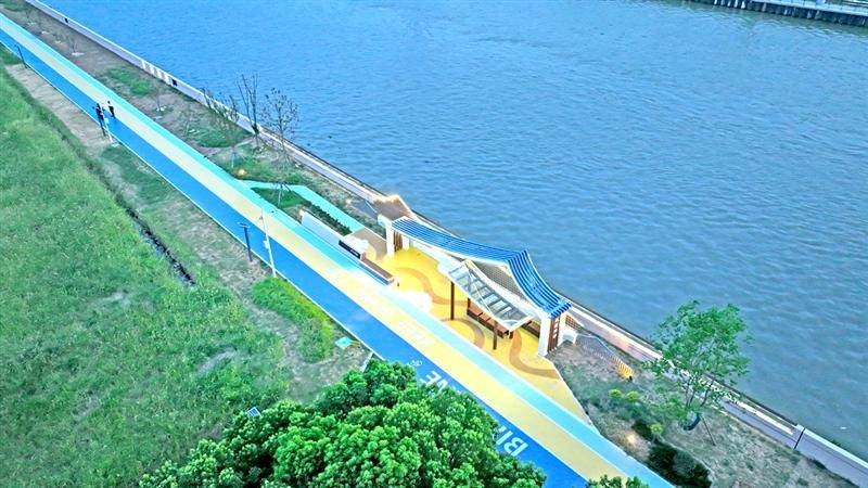 “从堤防更新、三道贯通、亮化绿化及景观构筑物等方面对运河沿线进行了改造提升。”玉祁街道综合行政执法工作人员介绍,京杭大运河(五牧段)是大运河流入无锡的首段,全长1.1公里,规划有“初遇金匮、梦回五牧、田连阡陌·农耕人家”三个分区。其中,立足周边居民多样化的锻炼需求,运河岸线道路出新时建成了漫步、跑步、骑行三道贯通的休闲道路,“在这里,市民可以走近运河,‘近水’更‘亲水’。”