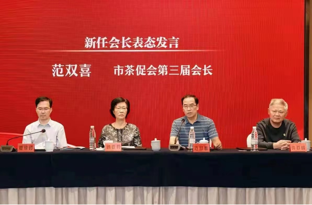 新当选会长范双喜以“感恩、感谢、赶路”三个关键词作了表态性发言。他表示,今后五年的工作,将以党建为引领,把握政治性、社会性、文化性和规范性,扎扎实实推进各项工作。茶促会今后工作思路是:坚持党的领导、充分发挥职能、提高文化品位、创意组织活动、搞好交流协作、强化自身建设。牢记“以茶文化引领茶产业发展,以茶产业促进茶文化繁荣”这一宗旨,发扬谦虚务实,精勤奉献的精神,认真履行职责,坚持守正创新,练好内功,提高社会公信力;坚持全心全意服务会员、服务茶企、服务社会,积极开展茶文化研究和推广,推动茶促会各项工作迈上新台阶。