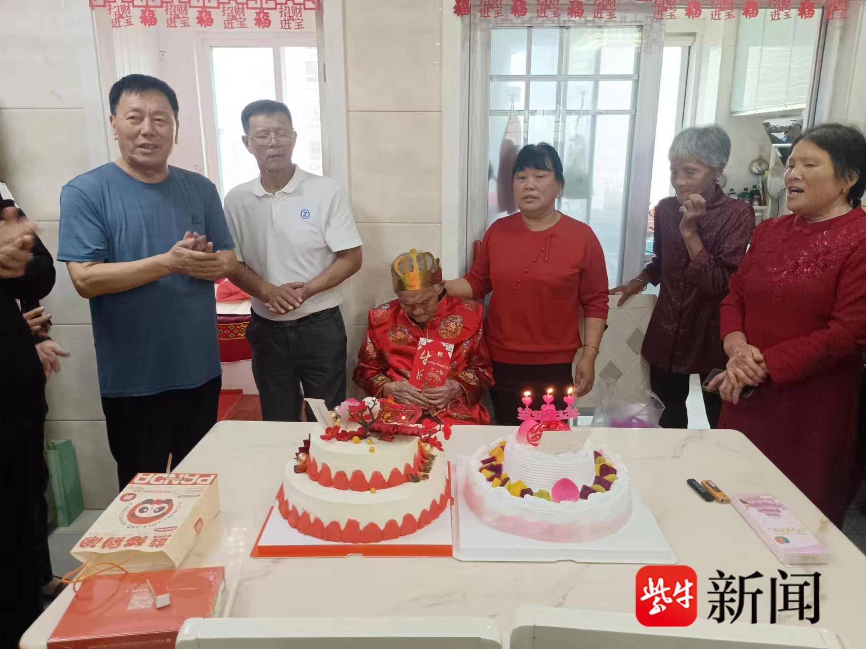9月26日,在盐城市盐南高新区恒荣世家小区十三号楼大门外,人头攒动,热闹非凡,只见有人手捧鲜花,有人手提花篮,有人手拎蛋糕,还有许多人手拿红包走进一户人家。原来,这是为百岁老人葛连兄祝寿的场面。