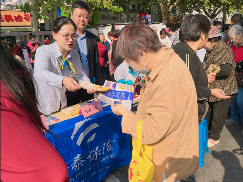 10月11日重阳节,江苏分公司无锡中心支公司与北桥社区、金佳物业、芯蕊社会服务发展中心、河埒街道文化站联合开展了“九九重阳节 浓浓敬老情”百场文艺进社区活动。活动期间江苏分公司无锡中心支公司总经理室组织内勤员工分成多个小分队,深入社区参与便民集市、消保宣传活动。