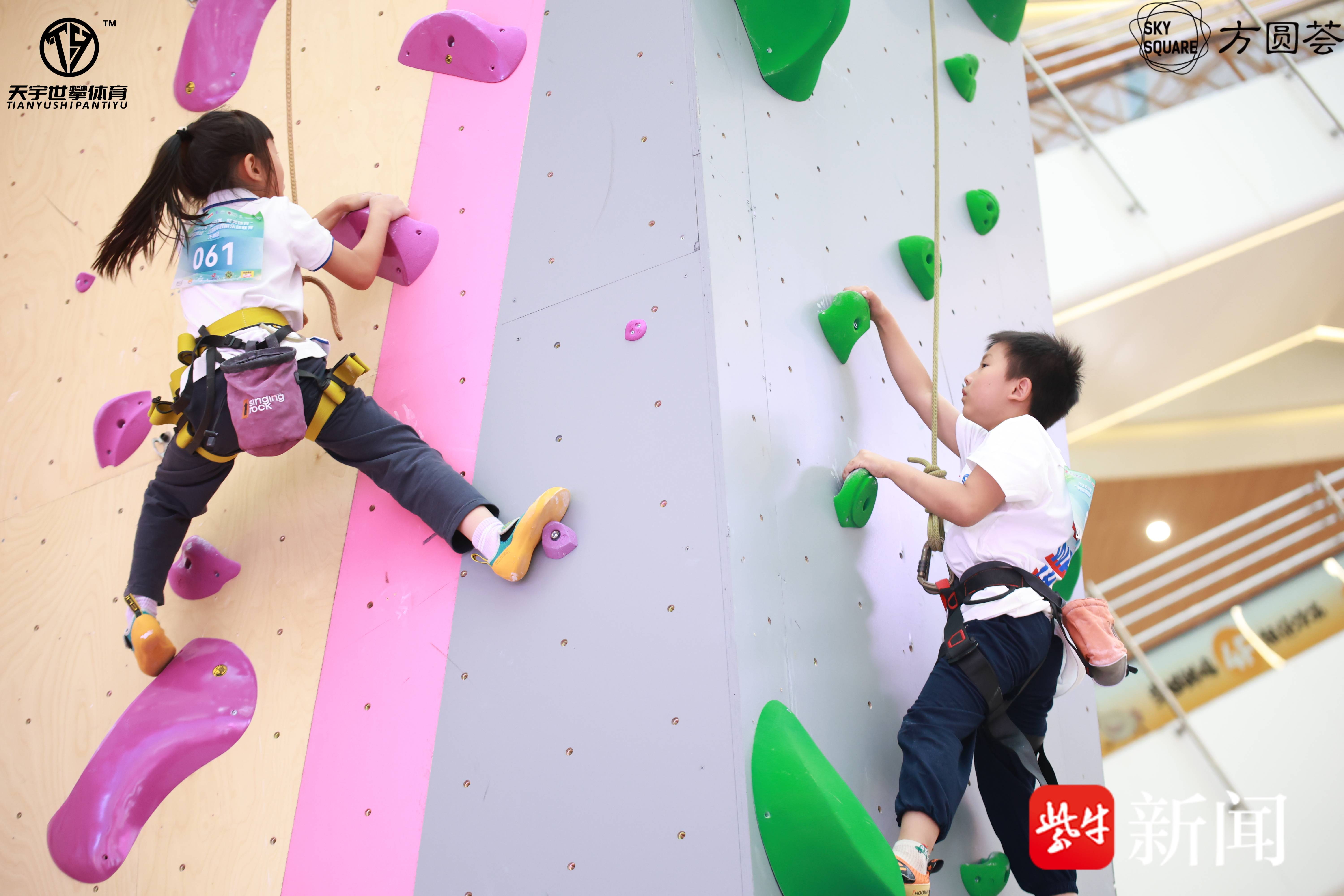 在巴黎奥运会中,中国选手先后在速度攀岩项目中摘银,让这个项目又火了一把,越来越多人参与攀岩,其中不乏小学生。位于方圆荟一楼中庭的彩色攀岩墙具有21米高的岩壁,是江苏省内目前最高的室内攀岩岩壁,吸引了不少喜欢挑战的都市运动一族,本次赛事赛场总高度为21米,分为难度赛和速度赛,共分7岁至9岁、10岁至12岁和13岁至15岁三个年龄段男子、女子赛,其中速度道设有最后拍板时间停止按钮,时间越短者成绩越好;难度道为不规则路线,攀高者取胜,在高度相同的情况下,时间更短者取胜。